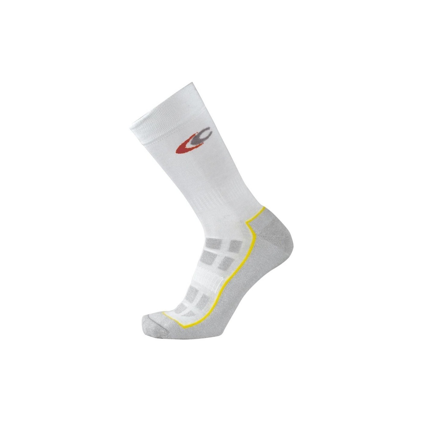 Estructura de hilado COOLMAX que deja siempre el pie seco. Con tratamiento FRESH antibacteriano y contra los malos olores. Estructura reforzada con nylon para una mayor duración.Empeine acolchado para una menor presión en la zona de flexión,que favorece la circulación de la sangre.Sistema de acondicionamiento del aire debido a la construcción especial que deja el pie seco e inhibe la formación de las bacterias. Punta y talón reforzados con costura plana. Elastán de LYCRA, que permite una mayor eleasticidad y no pierde su forma después de los varios lavados.Elástico antiestrés en la caña.