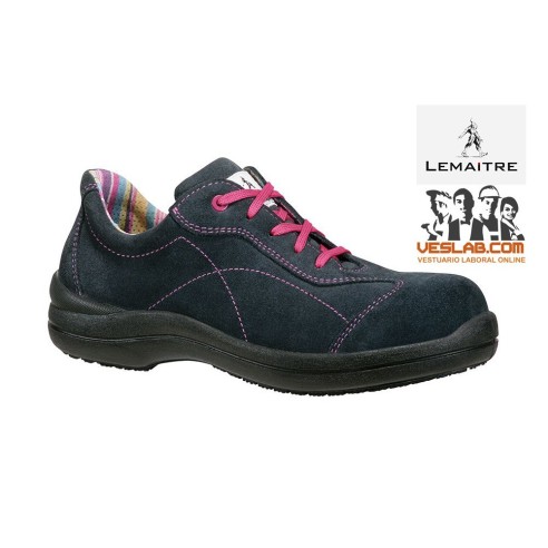 Zapato especial de seguridad para mujer en piel y forro transpirable. Suela parabólica antifatiga. Comodidad +++. Modelo suave y ligero. Color de moda. Se vende con cordones rosas y negros.