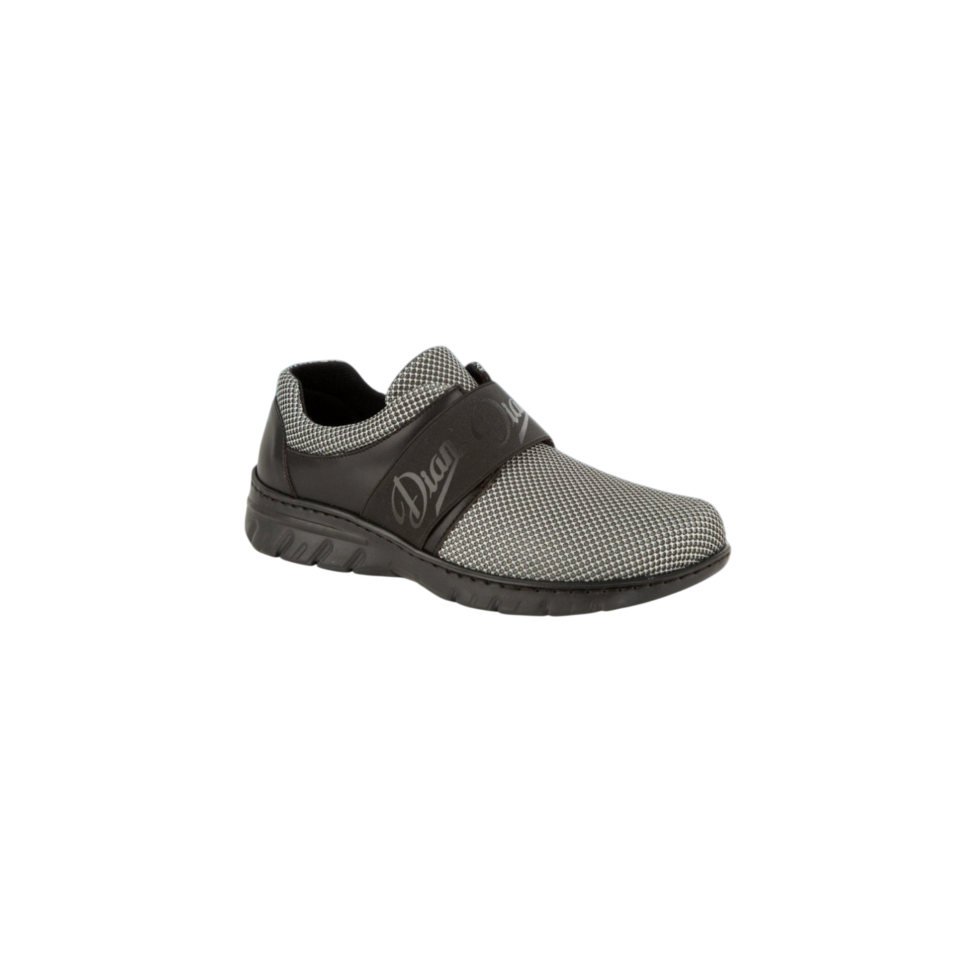 Zapatilla tipo blucher con cierre de elástico superior. Corte textil técnico D’COVER DRY®, forrado interior de material textil acolchado D’DRY®, collarín acolchado en el tobillo para evitar rozaduras. Horma recta de puntera redondeada. Contrafuerte de dureza suficiente para sujetar el calcáneo.