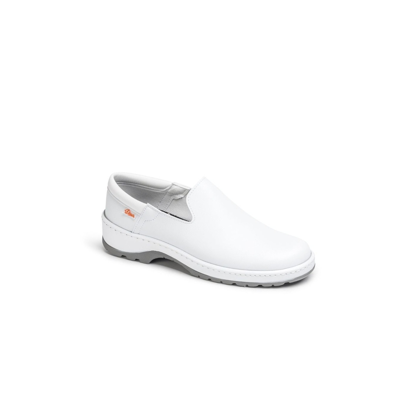 Zapato antideslizante de gran coeficiente en seco y húmedo con resaltes acanalados en la suela para facilitar la evacuación de líquidos evitando el deslizamiento en suelos mojados, corte de microfibra D’COVER OEKOTEX® transpirable y lavable a 40º con acolchado en el talón para evitar que el zapato se descalce al caminar o en posturas de flexión extrema, protegiendo el pie de rozaduras. Calzado sin puntera de seguridad.