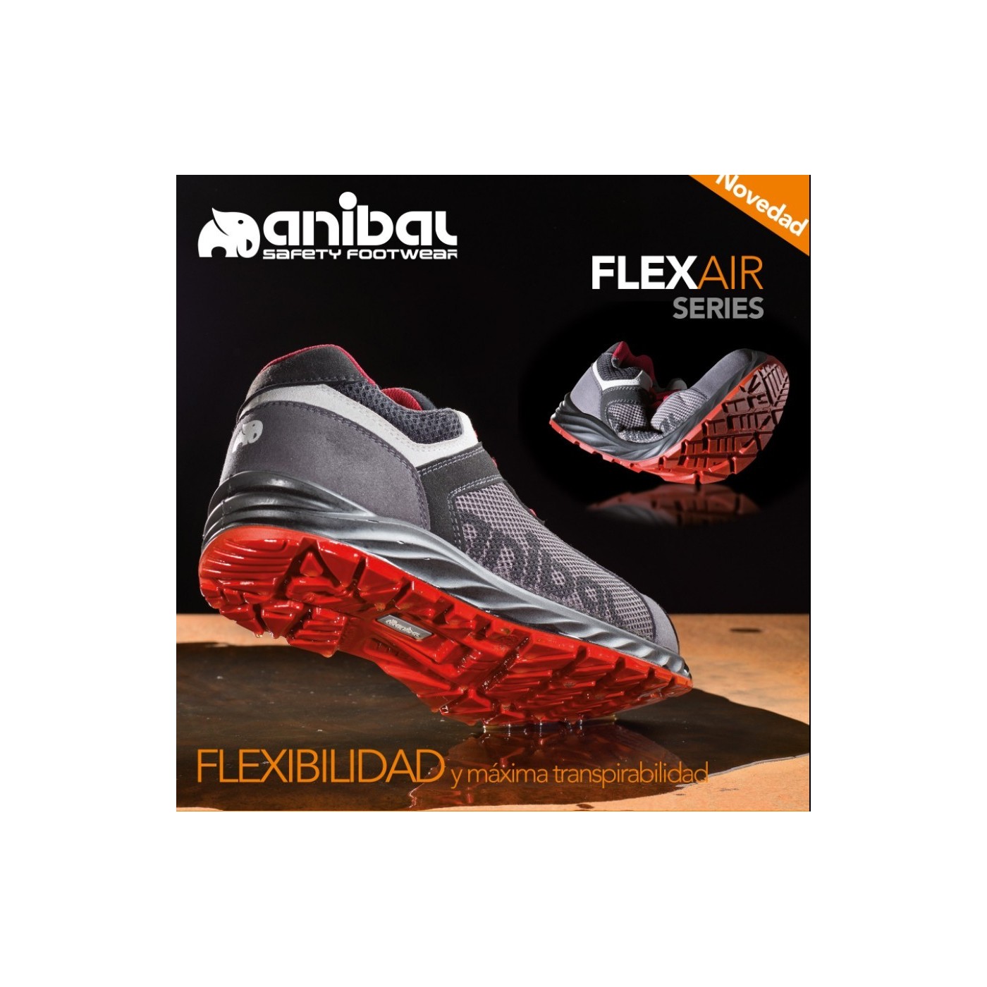 Como toda la línea Marca FLEXAir ofrece la maxima transpirabilidad, por lo que hace de este modelo una buena alternativa como calzado deportivo de seguridad.
