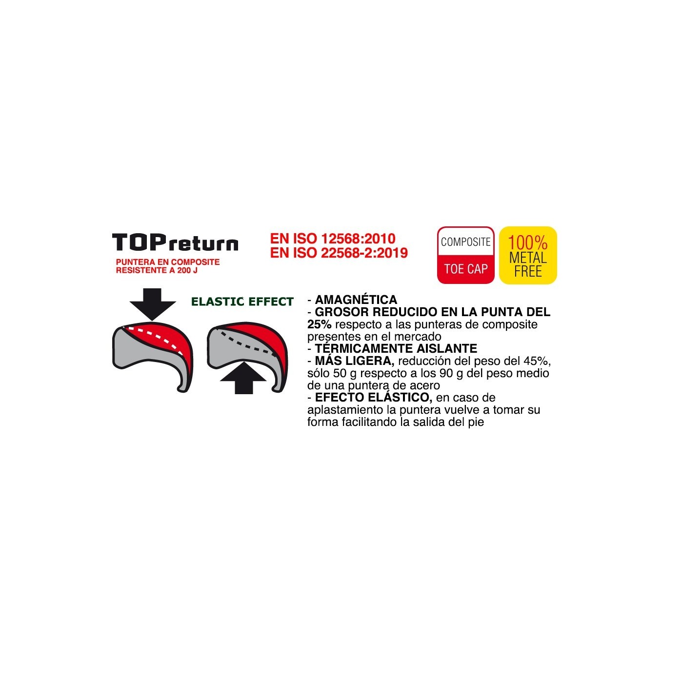 La plantilla del zapato es de tipo EVANIT, una mezcla especial de EVA (etilvinilacetato) y nitrilo que brinda gran confort y cuenta con un espesor variable de 12 mm en el talón, 8 mm en la zona intermedia y 3.8 mm en la puntera. Esta plantilla es termoformada, anatómica y perforada, lo que mejora la transpirabilidad. También es antiestática gracias a un tratamiento especial de la superficie y a las costuras realizadas con hilos conductores.