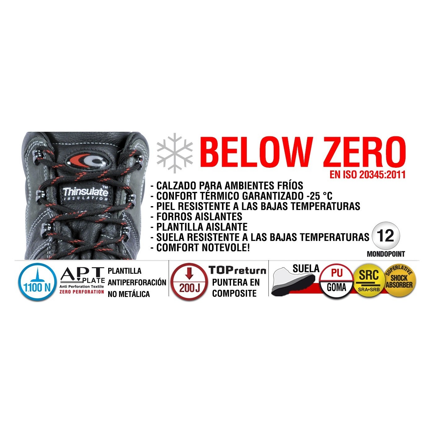 Cada uno de sus componentes están diseñados para resistir a temperaturas extremas hasta -25ºC. Superando la prueba Cold Insulation a -17ºC de norma EN ISO 20345.
