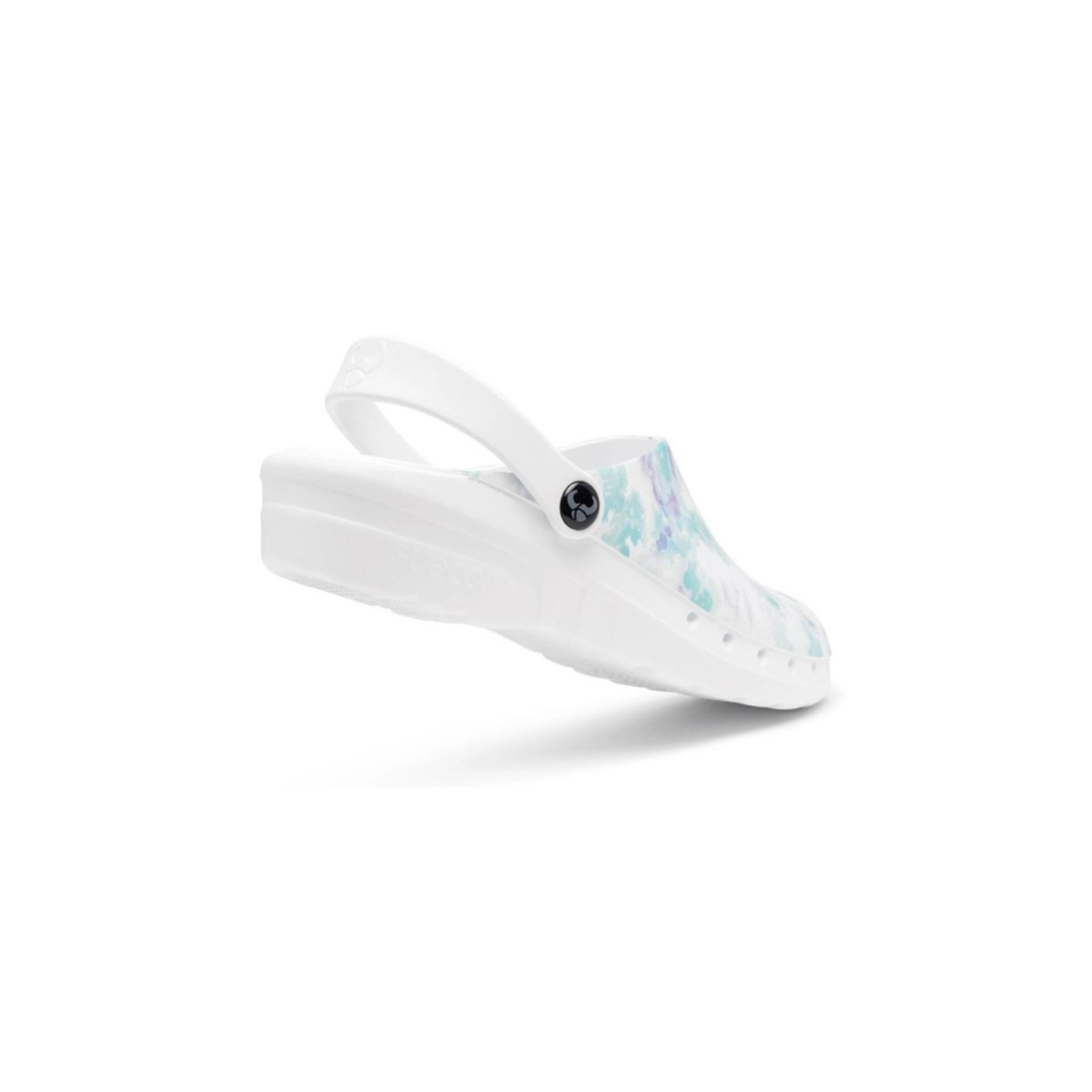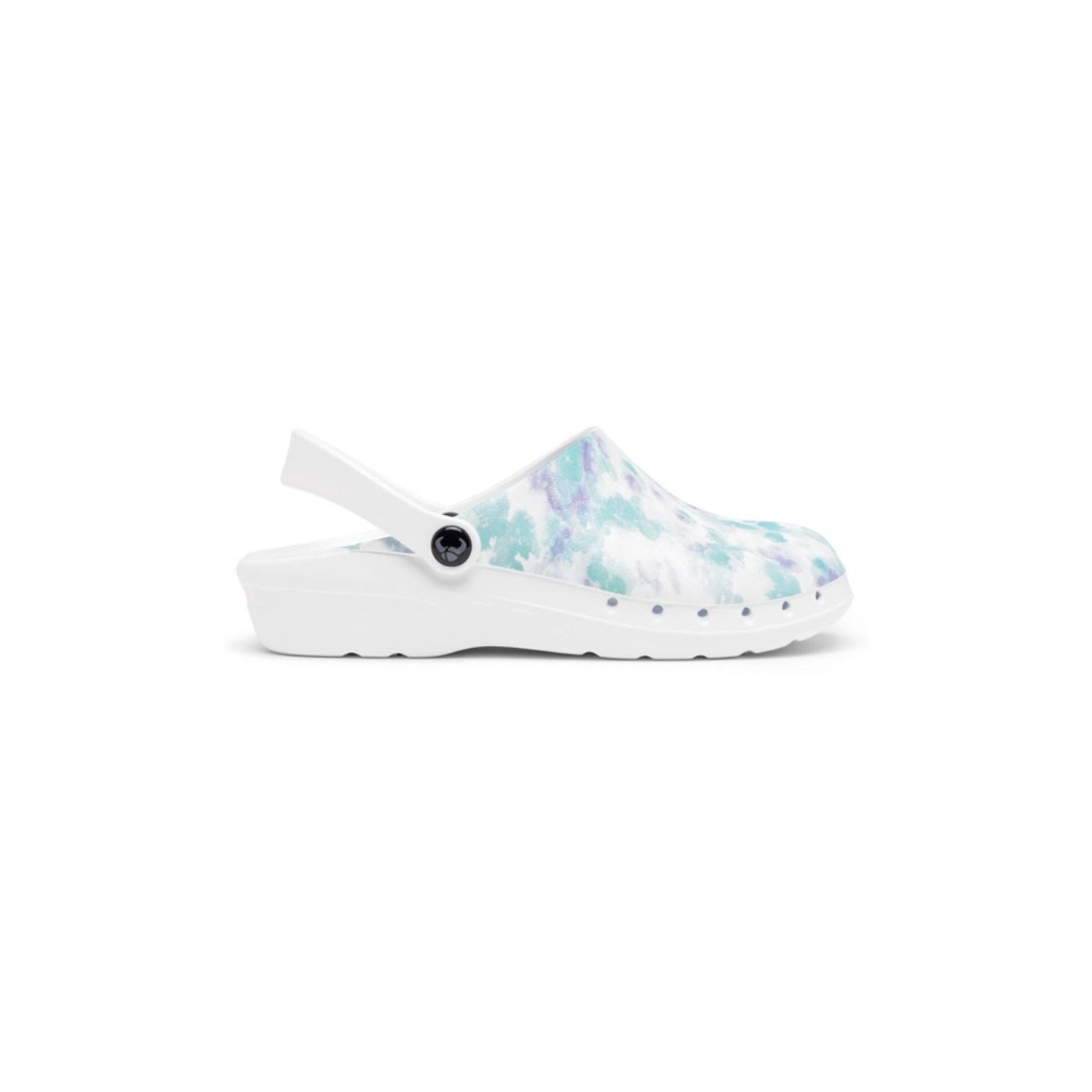 Los zuecos sanitarios estampados ODEN Water Flower de Suecos ofrecen comodidad, seguridad y estilo gracias a su diseño ergonómico, suela antideslizante, material antimicrobiano e impermeable, y ventilación óptima. Son ligeros, flexibles y esterilizables, ideales para largas jornadas laborales.