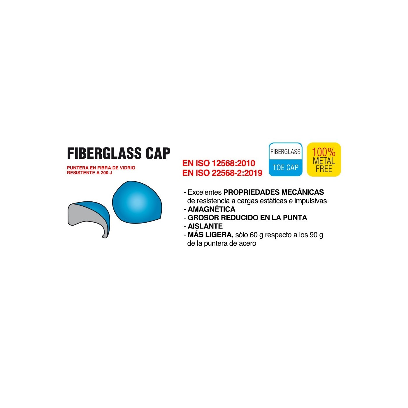 PUNTERA DE FIBRA DE VIDRIO: Equipada con una puntera FIBERGLASS CAP no metálica, resistente a impactos de hasta 200 J, asegurando protección sin comprometer la ligereza.