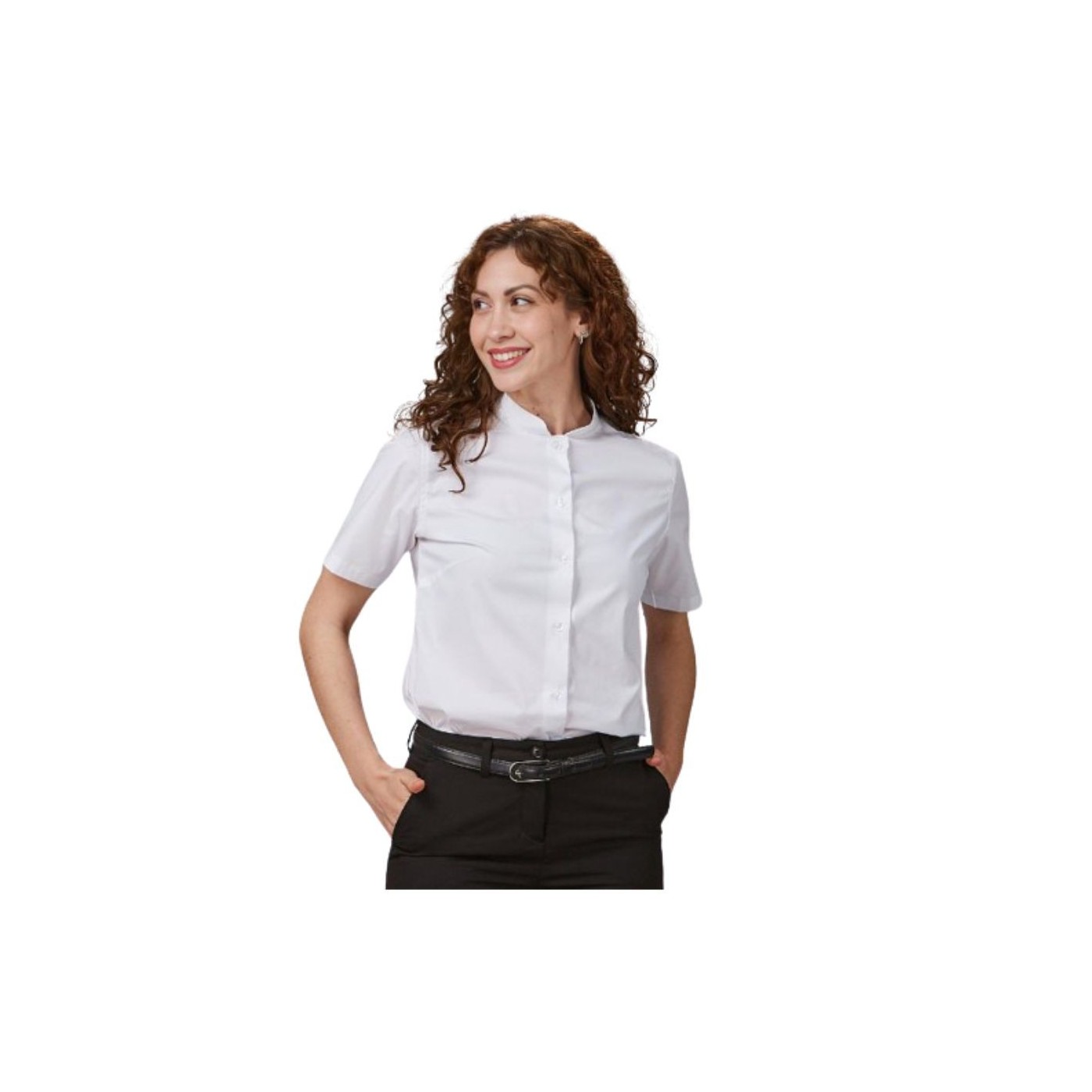 CAMISA MUJER M/C C/MAO "RED LINE" de Gary's: Elegante y cómoda, con cuello mao y manga corta. Disponible en blanco y negro, con pinzas que realzan la silueta. Ideal para hostelería y negocios, garantizando estilo y durabilidad.