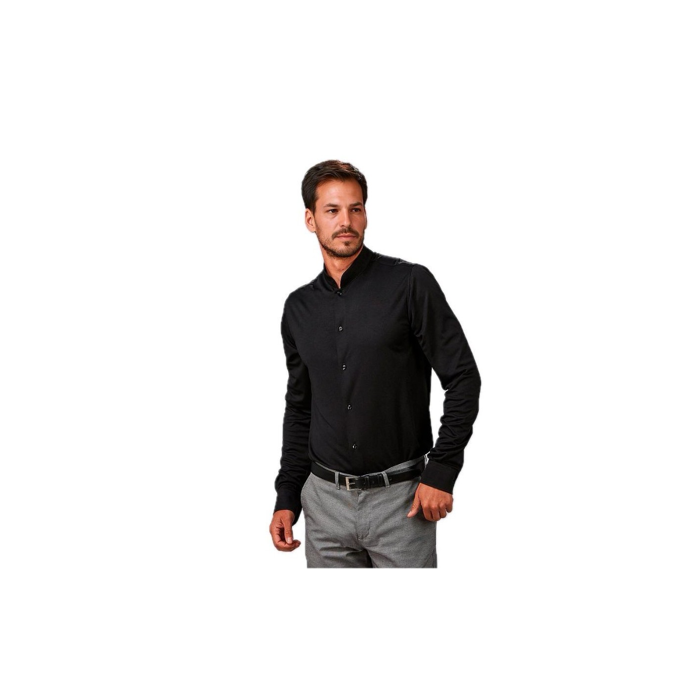 Camisa hombre cuello mao slim fit, fabricada en innovador tejido elástico CROSS ELASTIK Interlock, con propiedades hidrófugas, transpirables y de ajuste 360º. Diseño elegante y funcional, ideal para comercio y hostelería.
