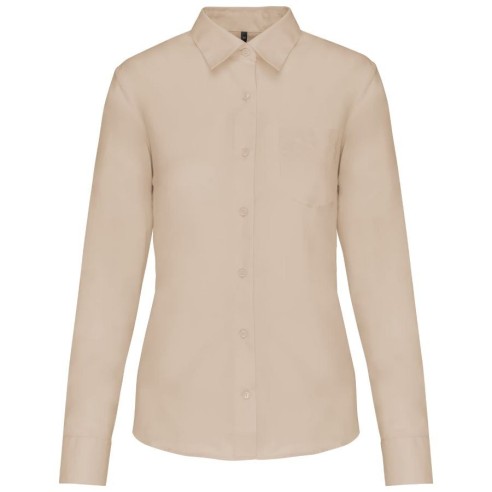 Camisa de manga larga para mujer en tejido de popelina de polialgodón, fácil de cuidar, con diseño elegante y disponible en una amplia gama de colores y tallas.