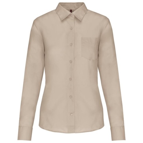 Camisa de manga larga para mujer en tejido de popelina de polialgodón, fácil de cuidar, con diseño elegante y disponible en una amplia gama de colores y tallas.