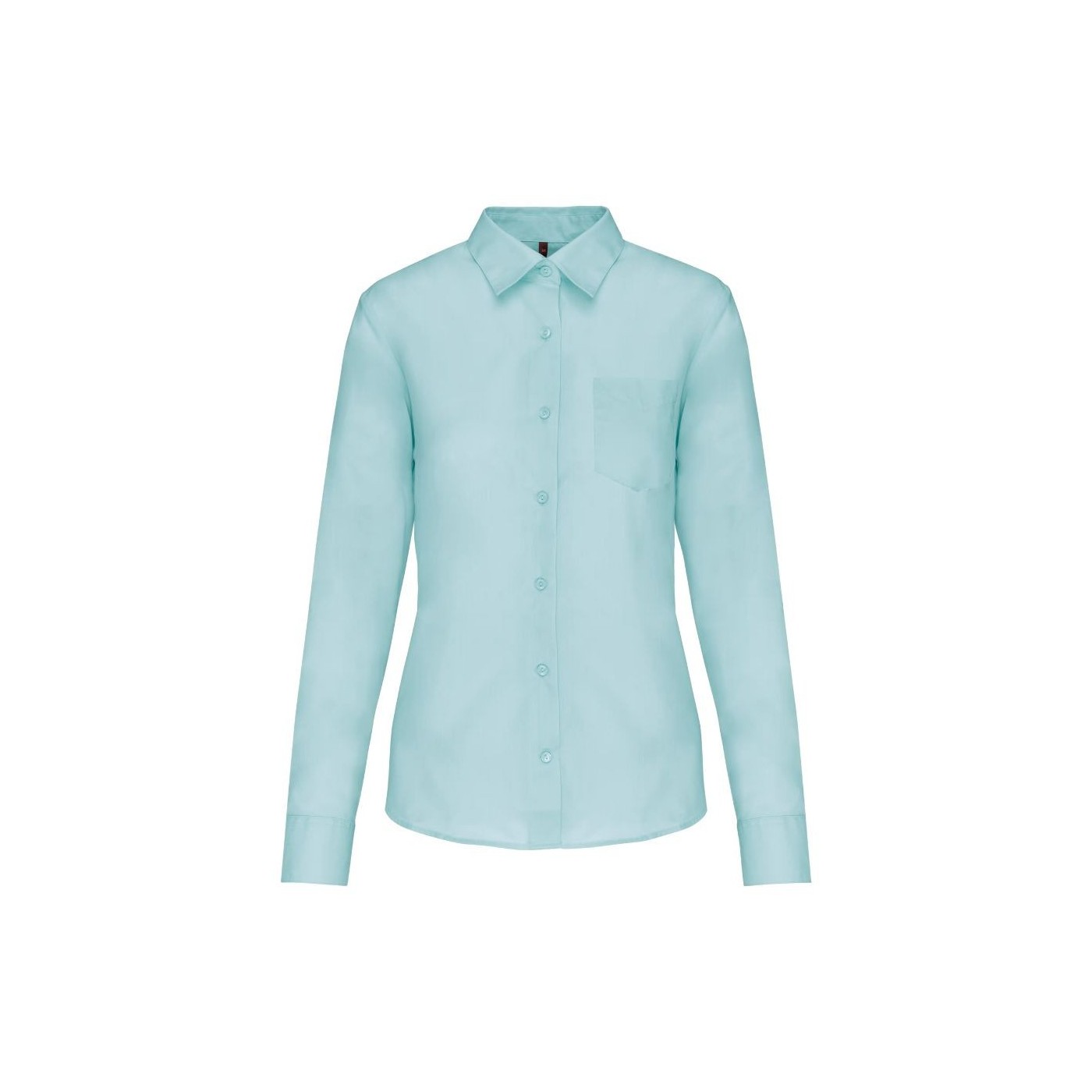 Camisa de manga larga para mujer en tejido de popelina de polialgodón, fácil de cuidar, con diseño elegante y disponible en una amplia gama de colores y tallas.