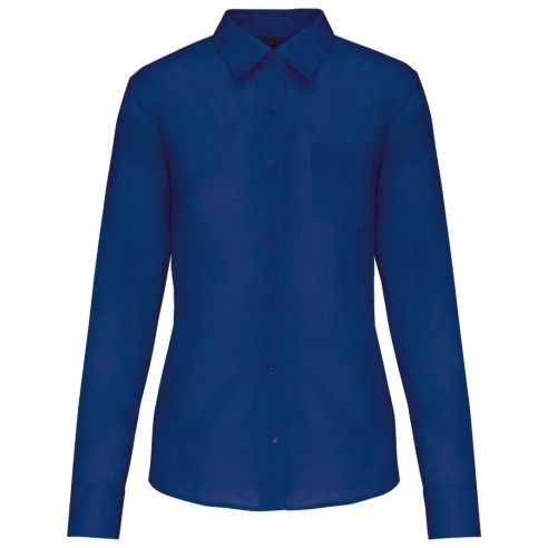 Camisa de manga larga para mujer en tejido de popelina de polialgodón, fácil de cuidar, con diseño elegante y disponible en una amplia gama de colores y tallas.