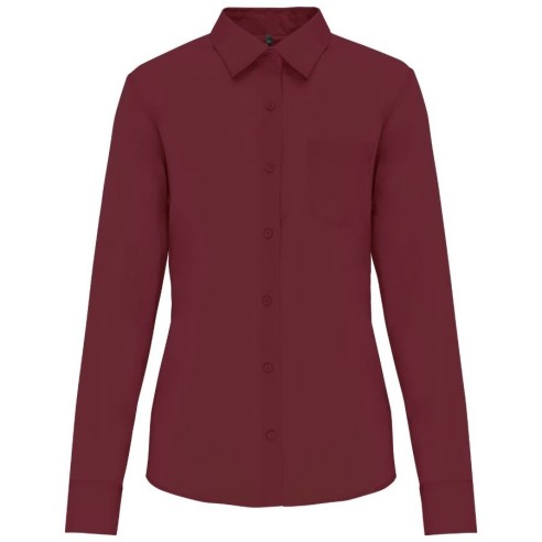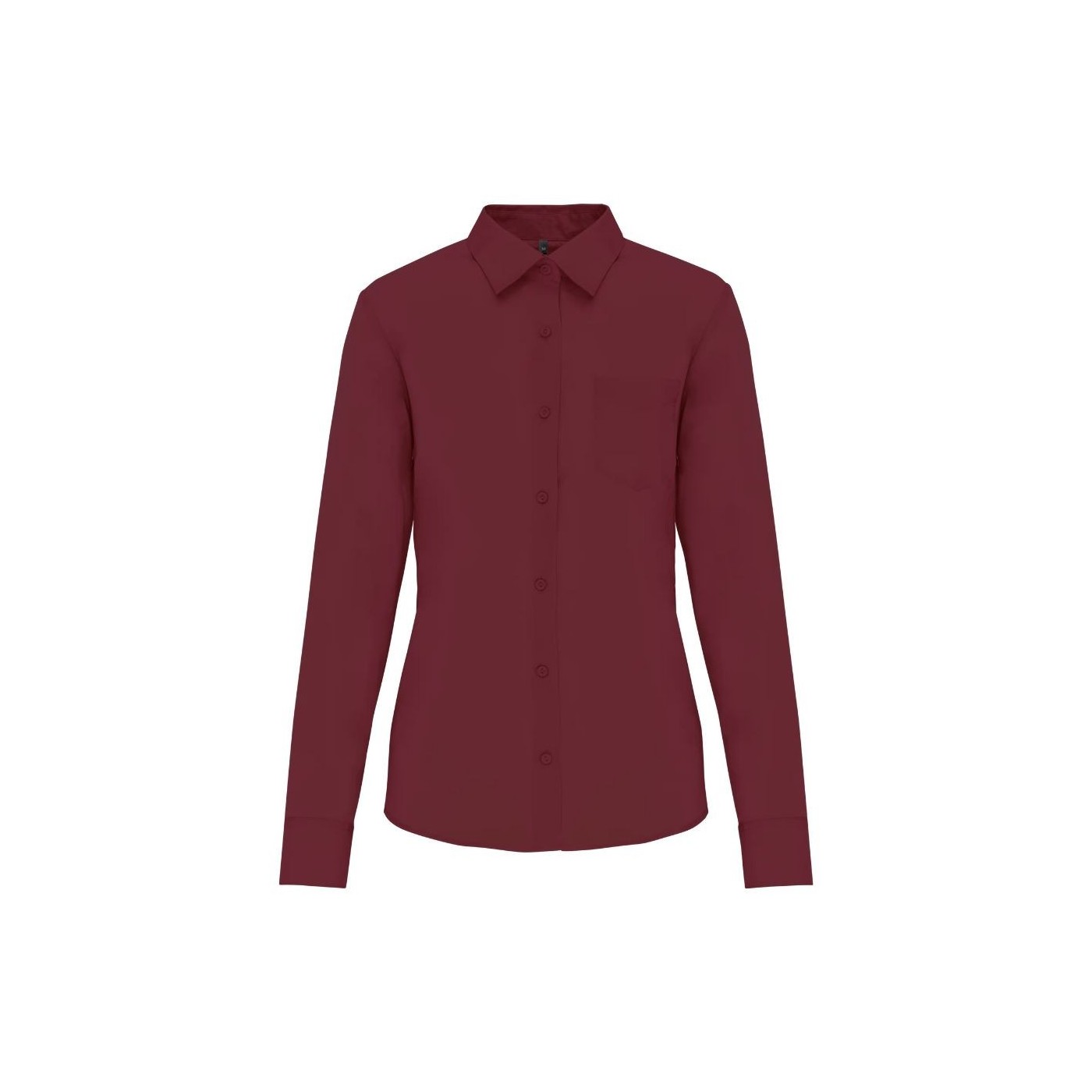 Camisa de manga larga para mujer en tejido de popelina de polialgodón, fácil de cuidar, con diseño elegante y disponible en una amplia gama de colores y tallas.