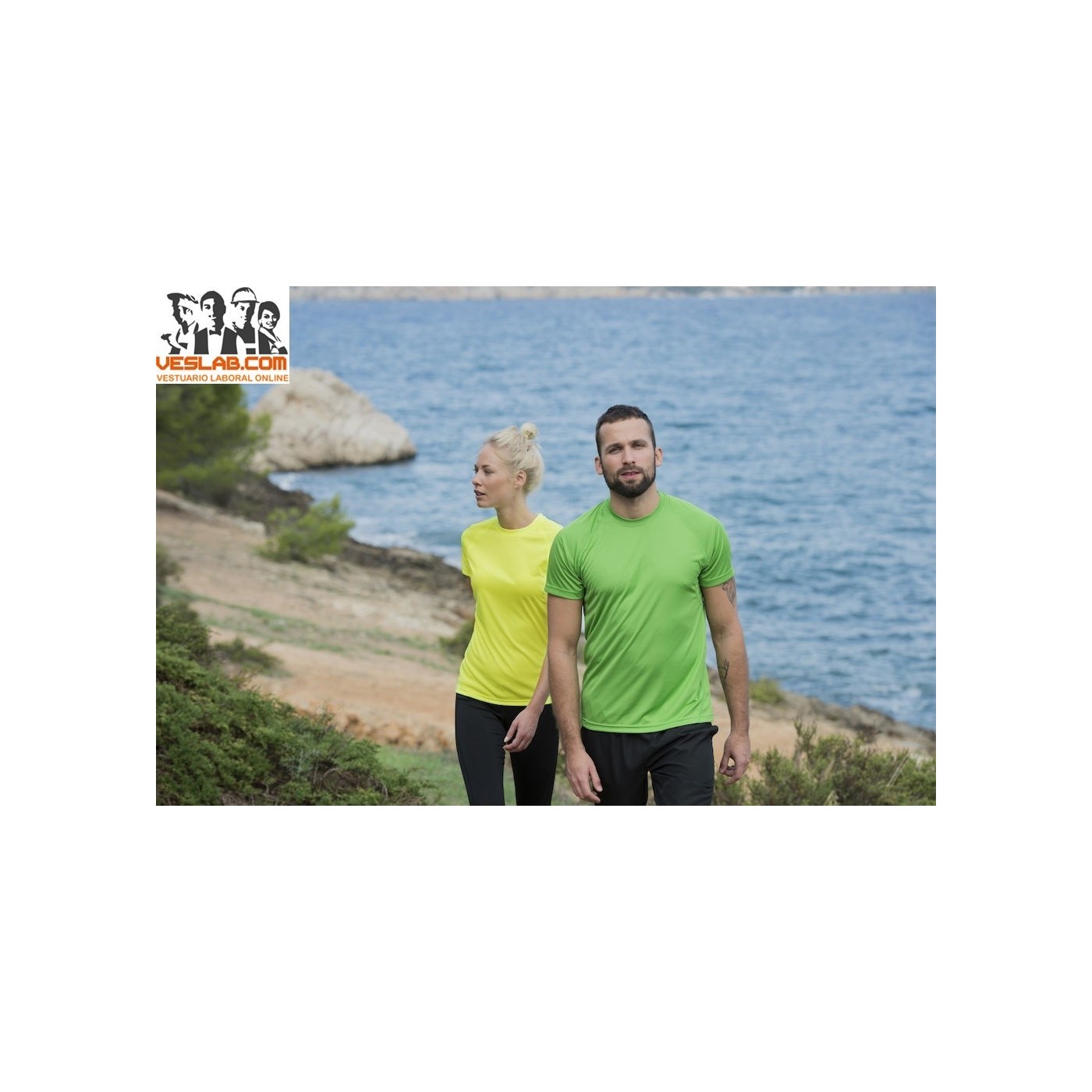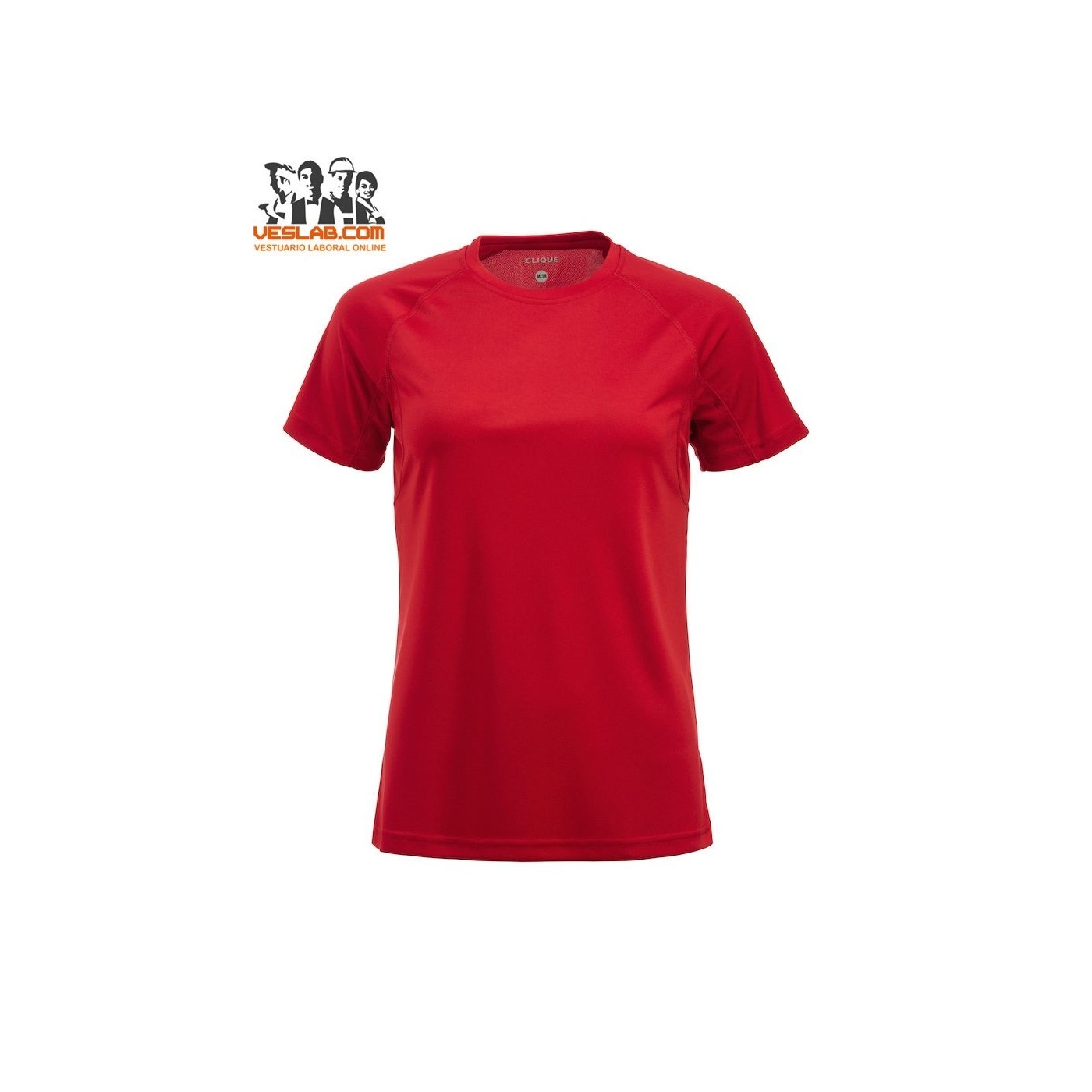 Camiseta blanca deportiva funcional en poliéster técnico para mujer.