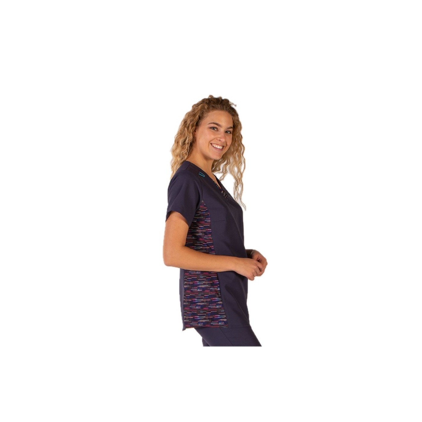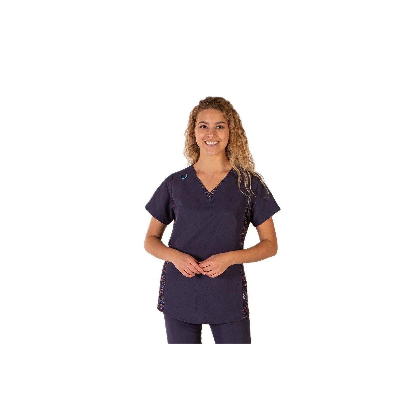 La blusa sanitaria ERICA ofrece comodidad y estilo con su diseño semi ajustado, tejido antibacteriano de microfibra 100% poliéster y detalles COOLMAX. Ideal para profesionales de la salud, es resistente, transpirable y fácil de mantener.