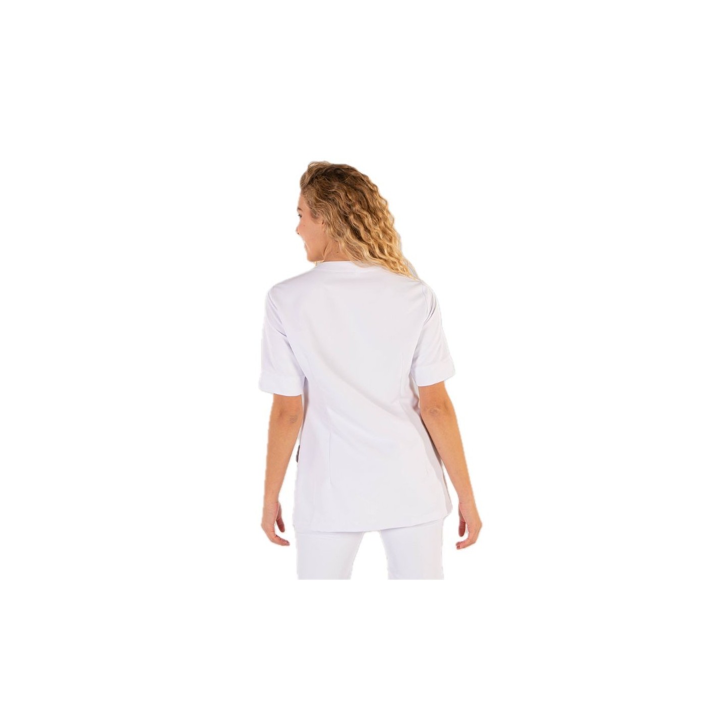 La Blusa Sanitaria Mujer CRIS ofrece comodidad y estilo con su tejido antibacteriano de microfibra, diseño semi ajustado y cierre de botones ocultos. Resistente a lejía y lavable a 90º.