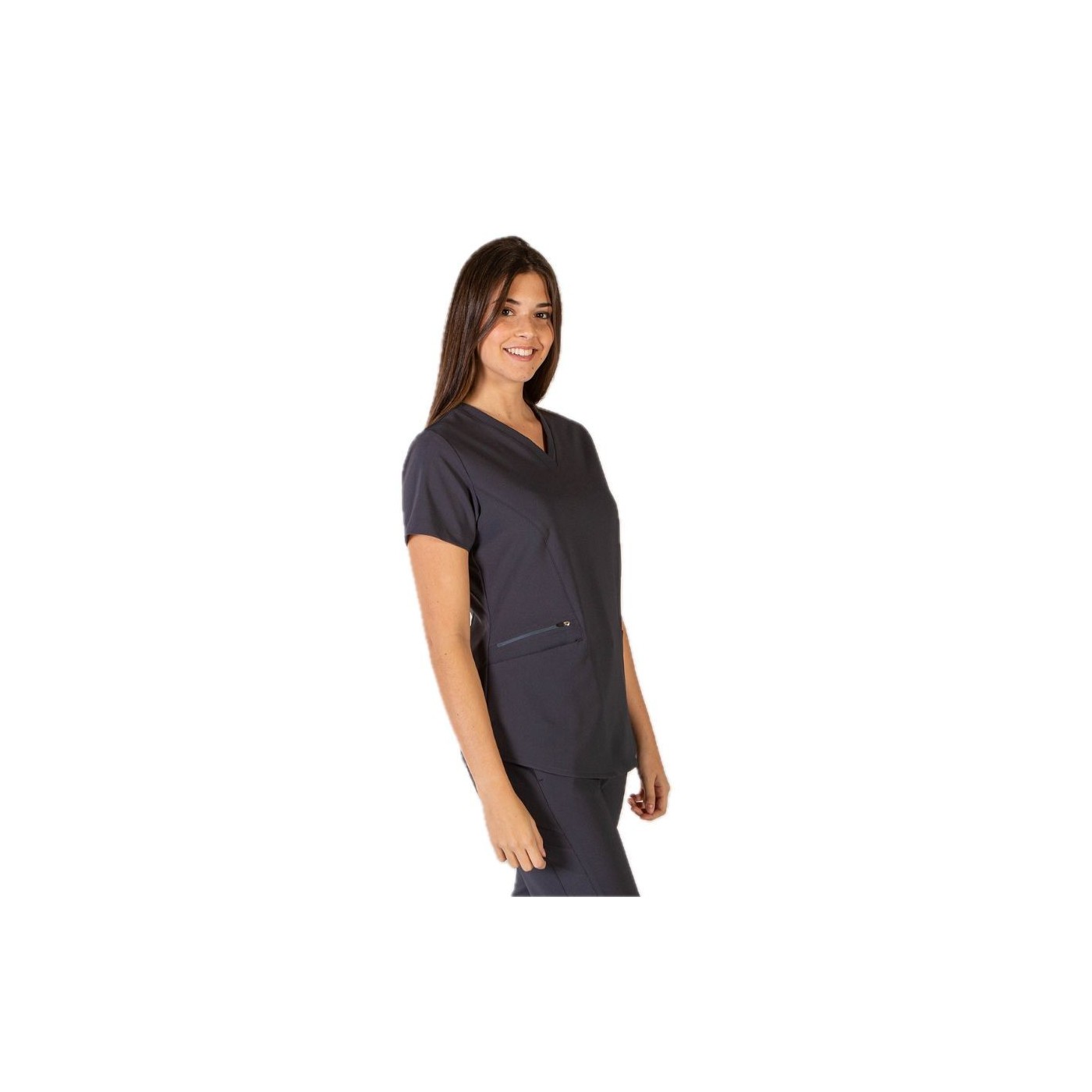 La Casaca Sanitaria OLAYA Gary's está diseñada para ofrecer comodidad y elegancia a los profesionales de la salud. Confeccionada en EXTRAFIBER (93% Poliéster y 7% Elastano), esta blusa de manga corta es ideal para largos turnos, proporcionando resistencia, transpirabilidad y un tacto suave. Su cuello pico y los detalles de costadillos y pinzas aseguran un ajuste perfecto y un look profesional.