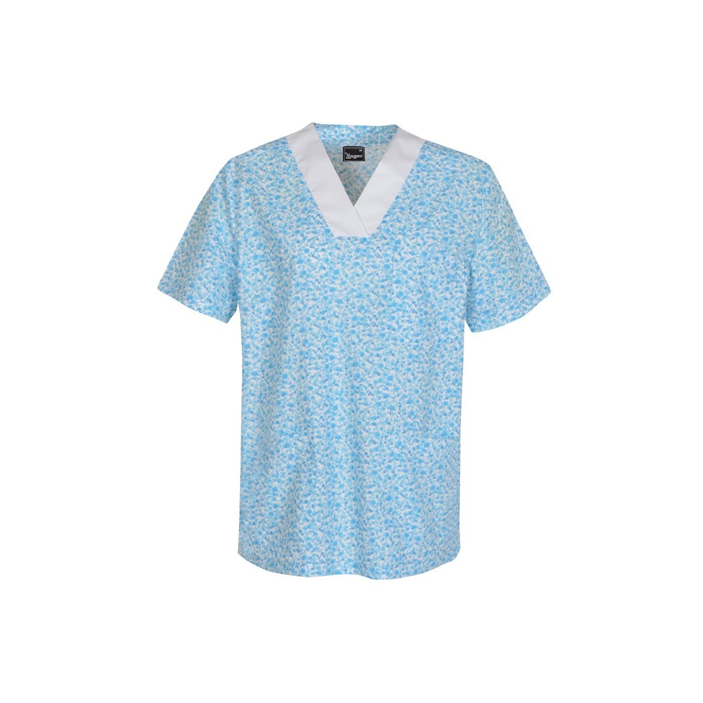 Casaca estampada floral de tejido muy ligero y fresco. Dispone de 3 bolsillos y un cuello de pico a contraste blanco.