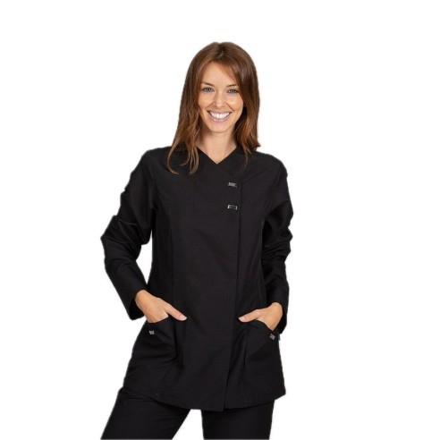 La Blusa Mujer BEGOÑA combina diseño estilizado con funcionalidad, gracias a su corte semi ajustado, cierre cruzado oculto y bolsillos prácticos. Confeccionada en microfibra antibacteriana, es lavable a 90º, transpirable, de secado rápido y repelente al cabello.