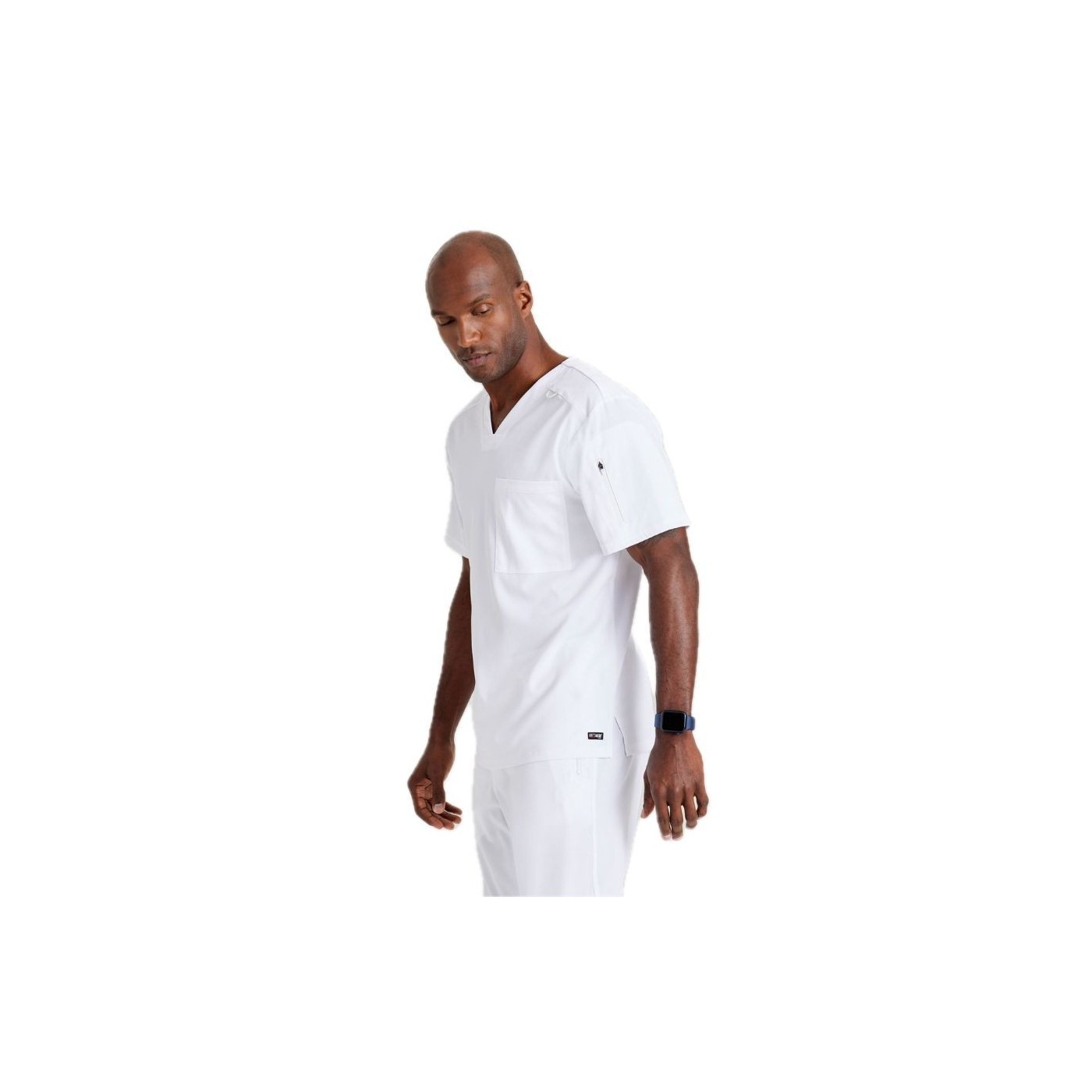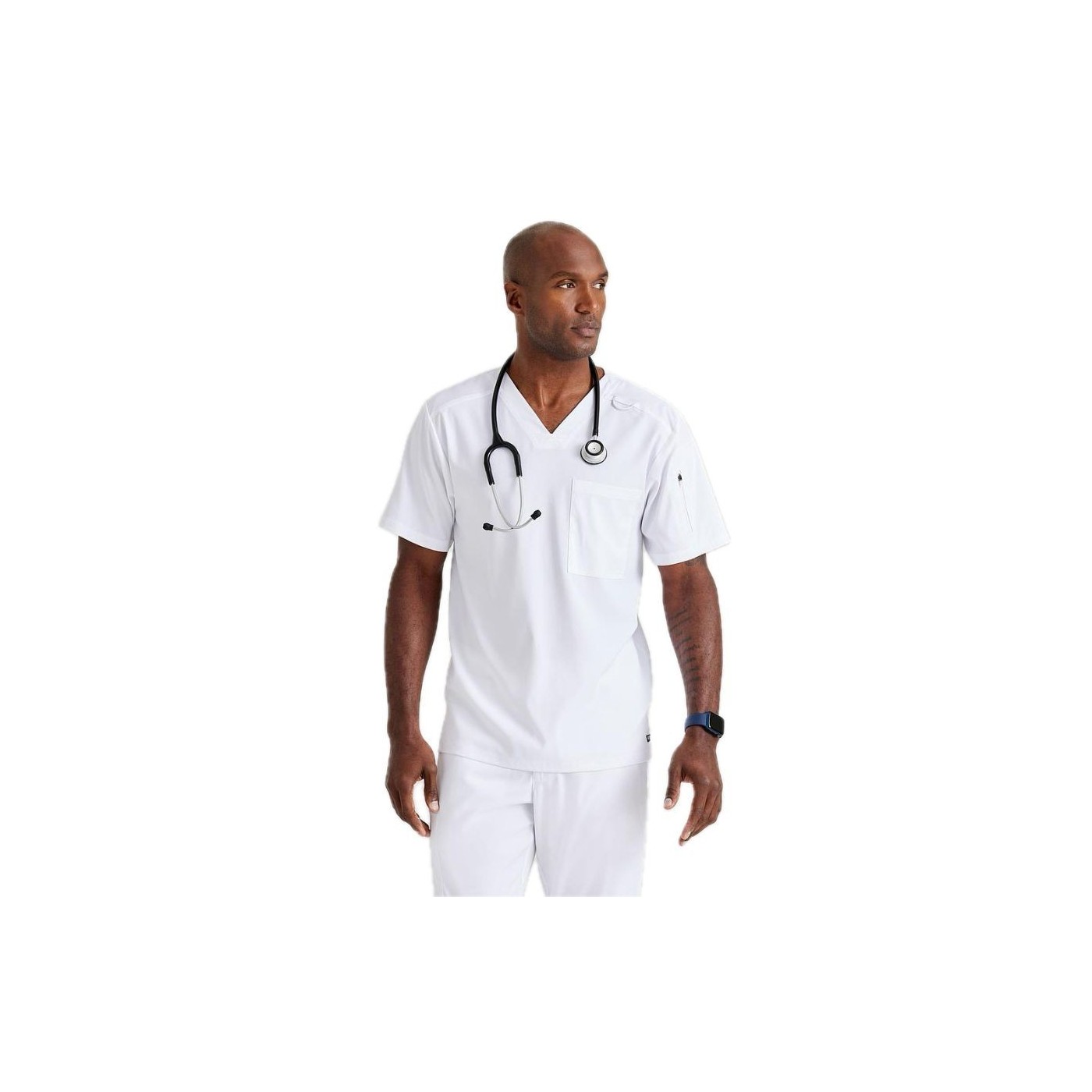 La casaca sanitaria Murphy Grey's Anatomy by Barco combina comodidad y estilo con su tejido antimicrobiano, escote en V y prácticos bolsillos, incluido uno con cremallera en la manga. Fabricada con materiales suaves y elásticos, ofrece gran durabilidad y fácil mantenimiento. Ideal para profesionales de la salud.
