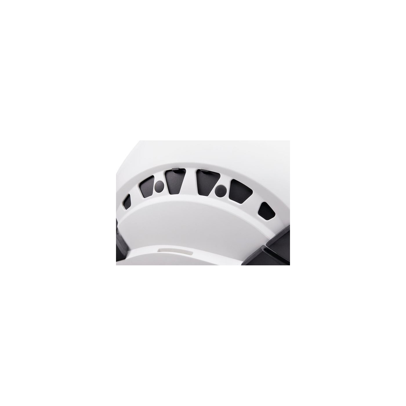 - Barboquejo DUAL que permite al trabajador modificar la resistencia del barboquejo para adaptar el casco a diferentes ambientes: trabajos en altura (EN 12492) y trabajos en el suelo (EN 397). El clip tiene dos posiciones para dos modos de utilización: resistencia elevada, para limitar el riesgo de perder el casco durante una caída y resistencia baja para limitar el riesgo de estrangulamiento en caso de que se enganche el casco cuando el usuario está en el suelo.