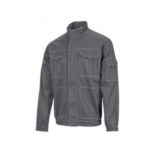Cierre central con cremallera, oculta con tapeta. Tapeta con velcro Cinturilla elástica lateral. Puños con abertura lateral y cierre de velcro Canesú delantero y trasero Cinco bolsillos: 2 bolsillos de parche en el pecho, con doble fuelle central, tapeta y velcro 2 bolsillos inferiores de parche, con fuelle inferior 1 bolsillo de parche en manga izquierda, con tapeta y velcro