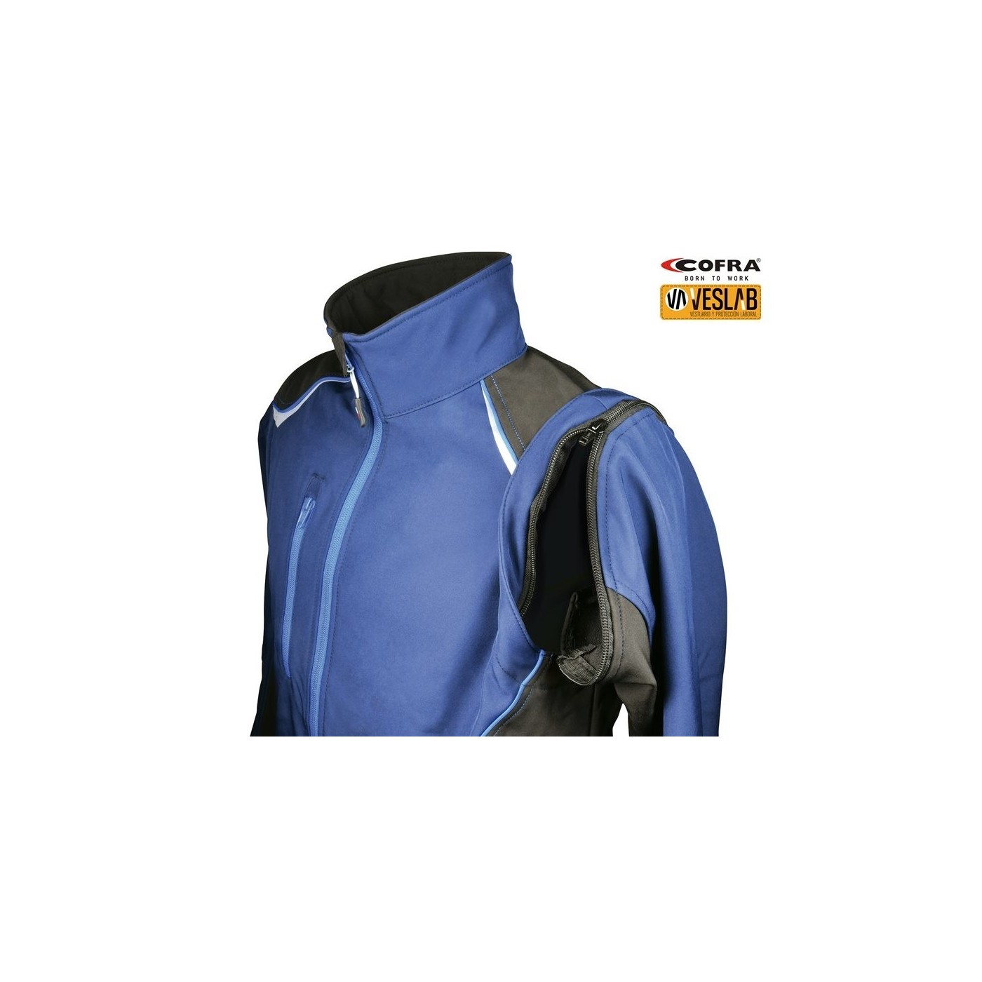 Cazadora soft-shell de trabajo con mangas desmontables, optimizando la funcionalidad de la prenda en todas las estaciones.