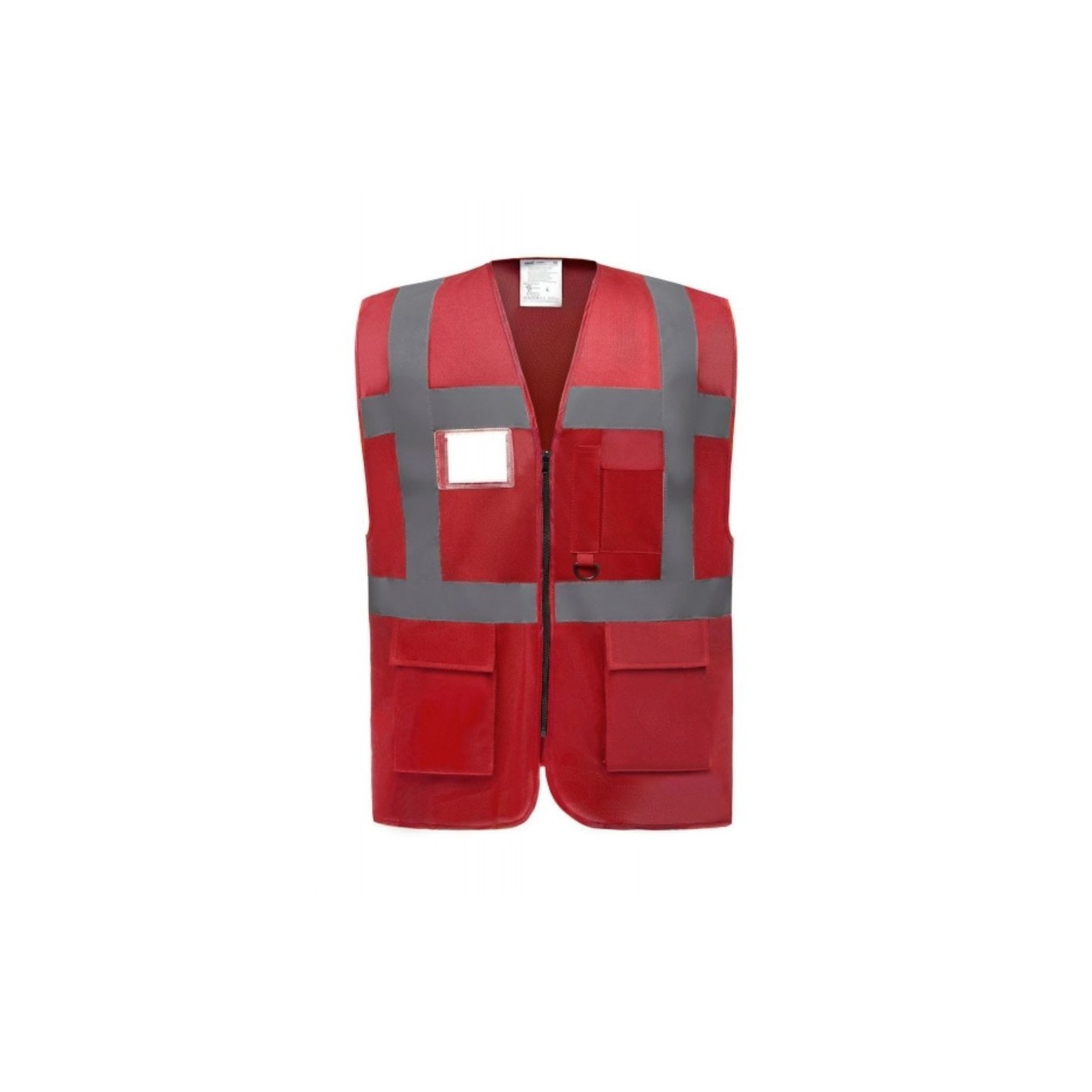 Chaleco Reflectante Multibolsillos con bandas reflectantes, bolsillos para teléfono y llaves, cremallera frontal y cumpliendo con normativas de seguridad EN ISO20471:2013. Mantente visible y organizado en todo momento.