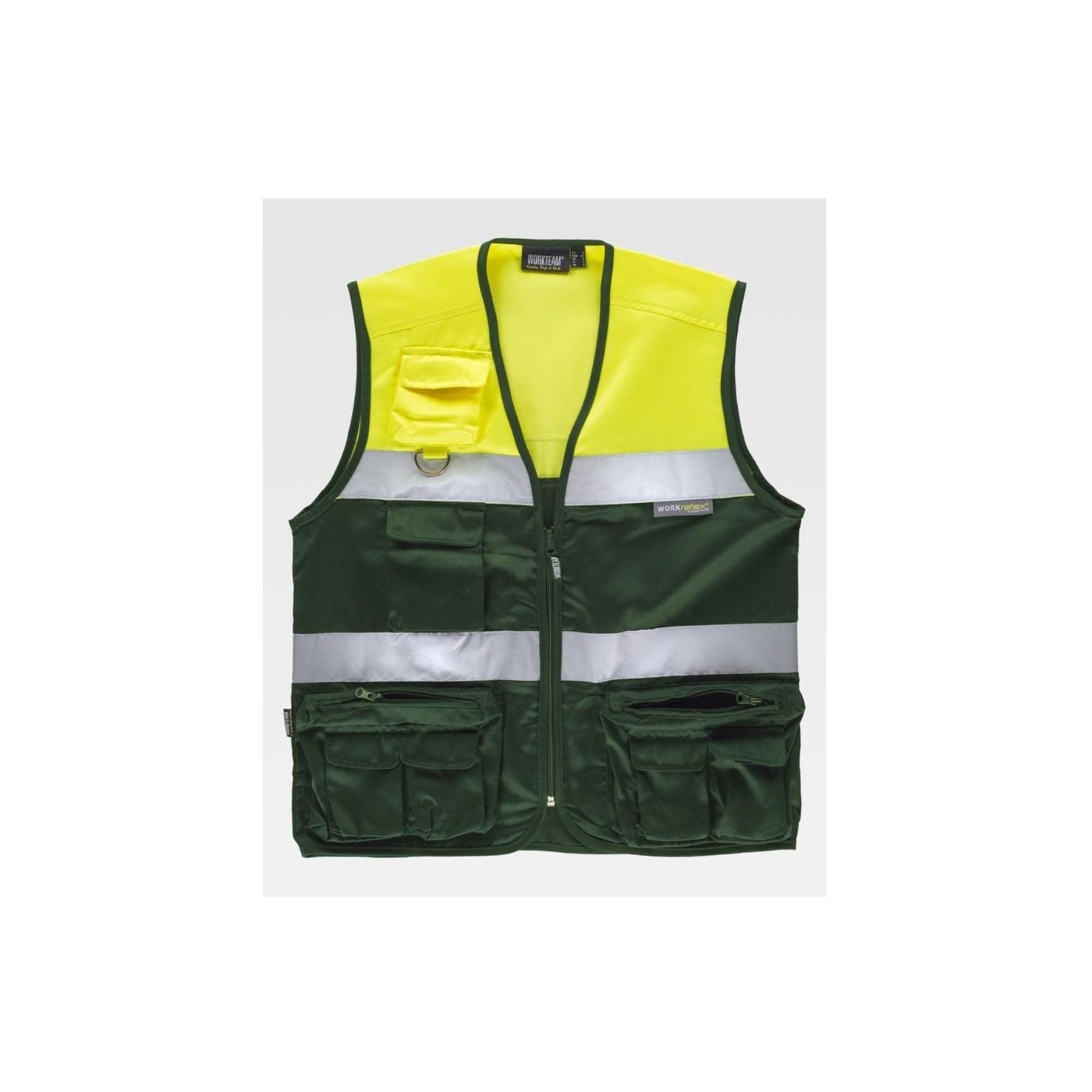Chaleco Safari con Cintas Reflectantes verde espalda