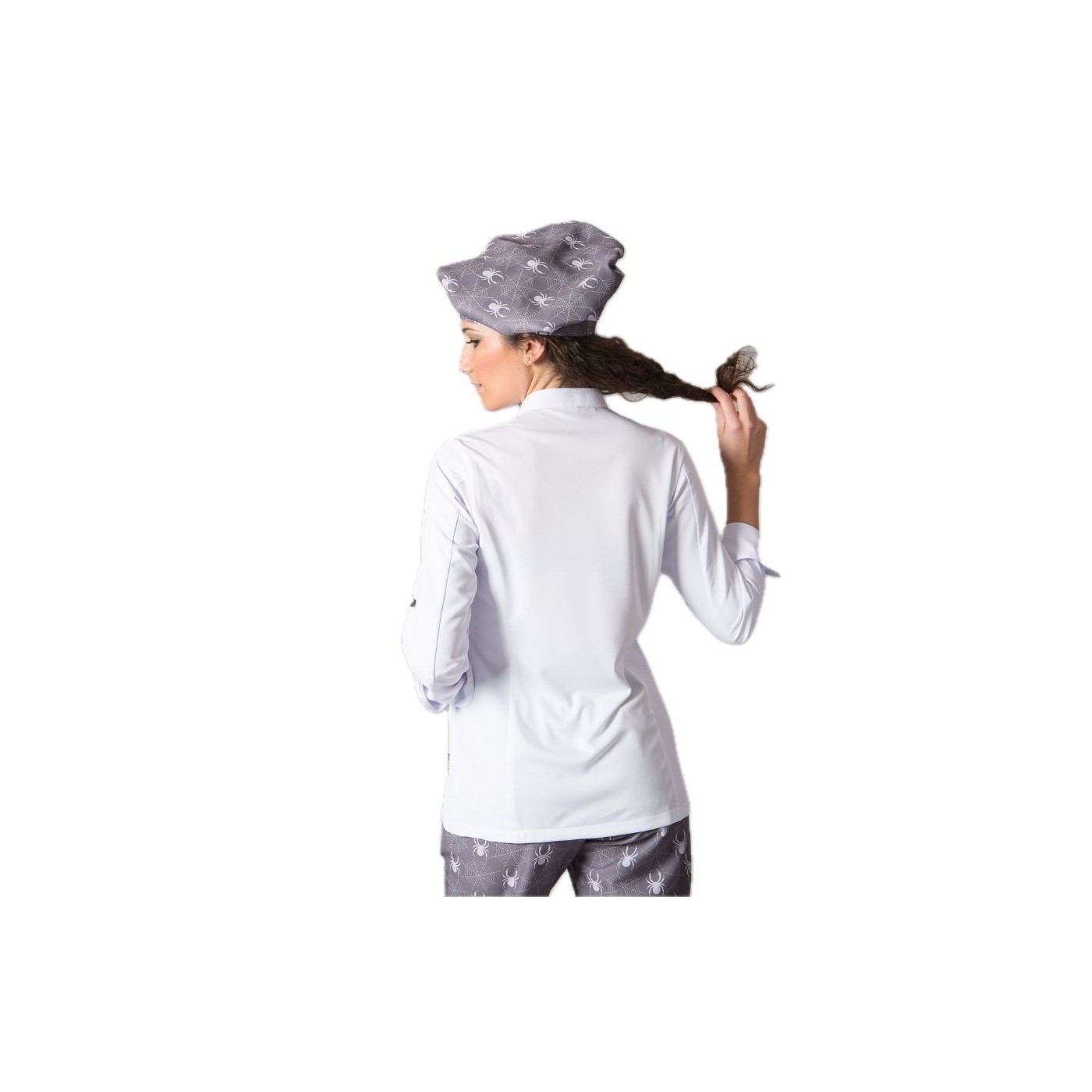 Para mayor comodidad, presenta tejido técnico AEROSILVER en la espalda, lo que la hace perfecta para uniformes de cocineras y chefs en el ámbito de la hostelería y restauración.