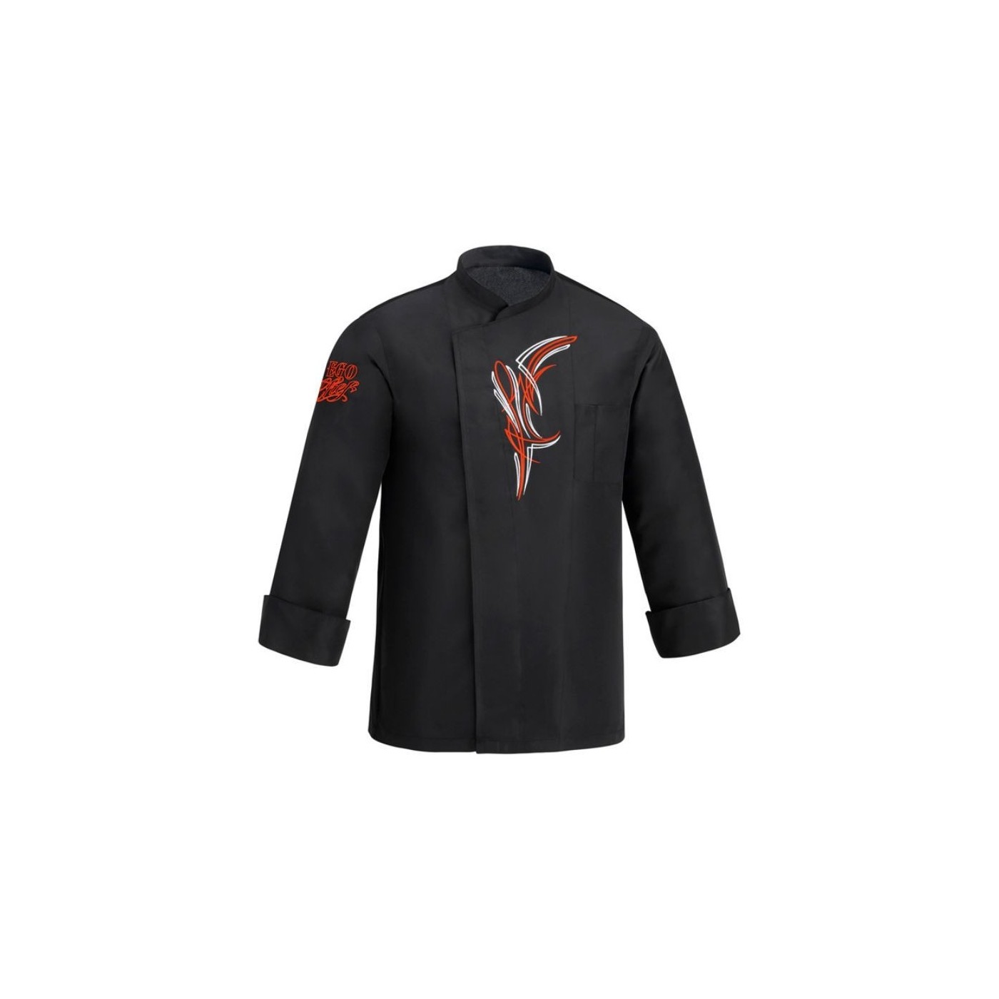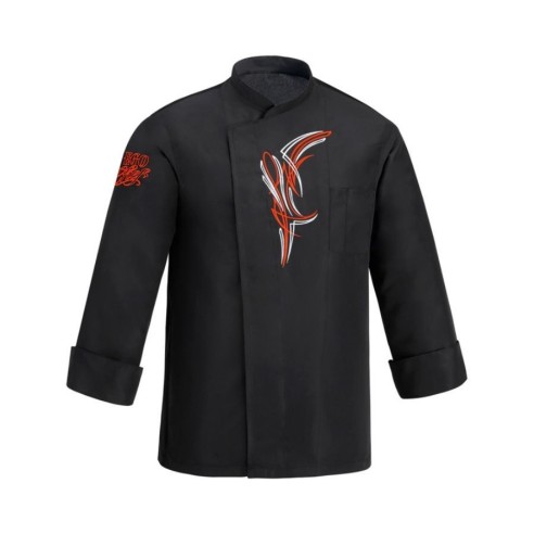 La Chaqueta Cocina Rider de EGOCHEF en negro con bordado Rider está fabricada en 100% microfibra, es waterproof y sin plancha. Ofrece un tacto de melocotón, un bolsillo en el pecho, y ventilación Air Plus en la espalda, garantizando comodidad y estilo en cada movimiento.