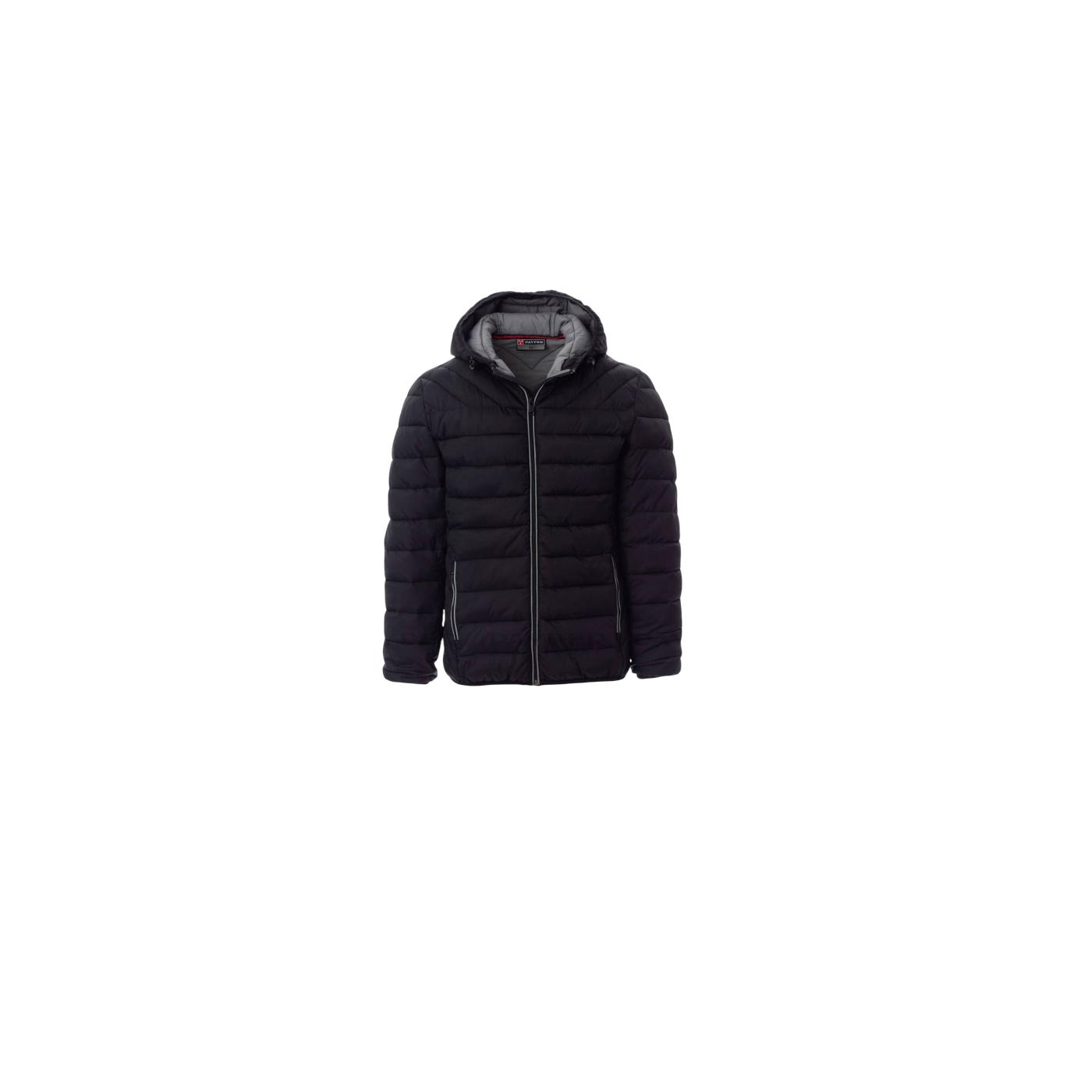 Es una chaqueta para hombre, con cremallera de 5 mm de plástico con un cursor metálico, con borde fino en los puños y la cintura. Contiene dos bolsillos externos. El interior es acolchado de poliéster efecto pluma, y tiene dos bolsillos.