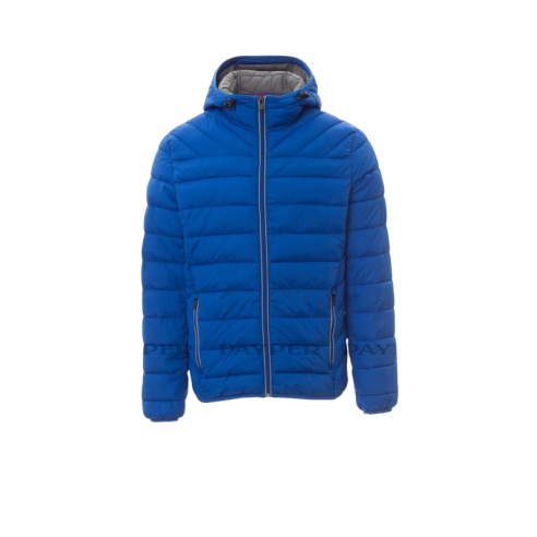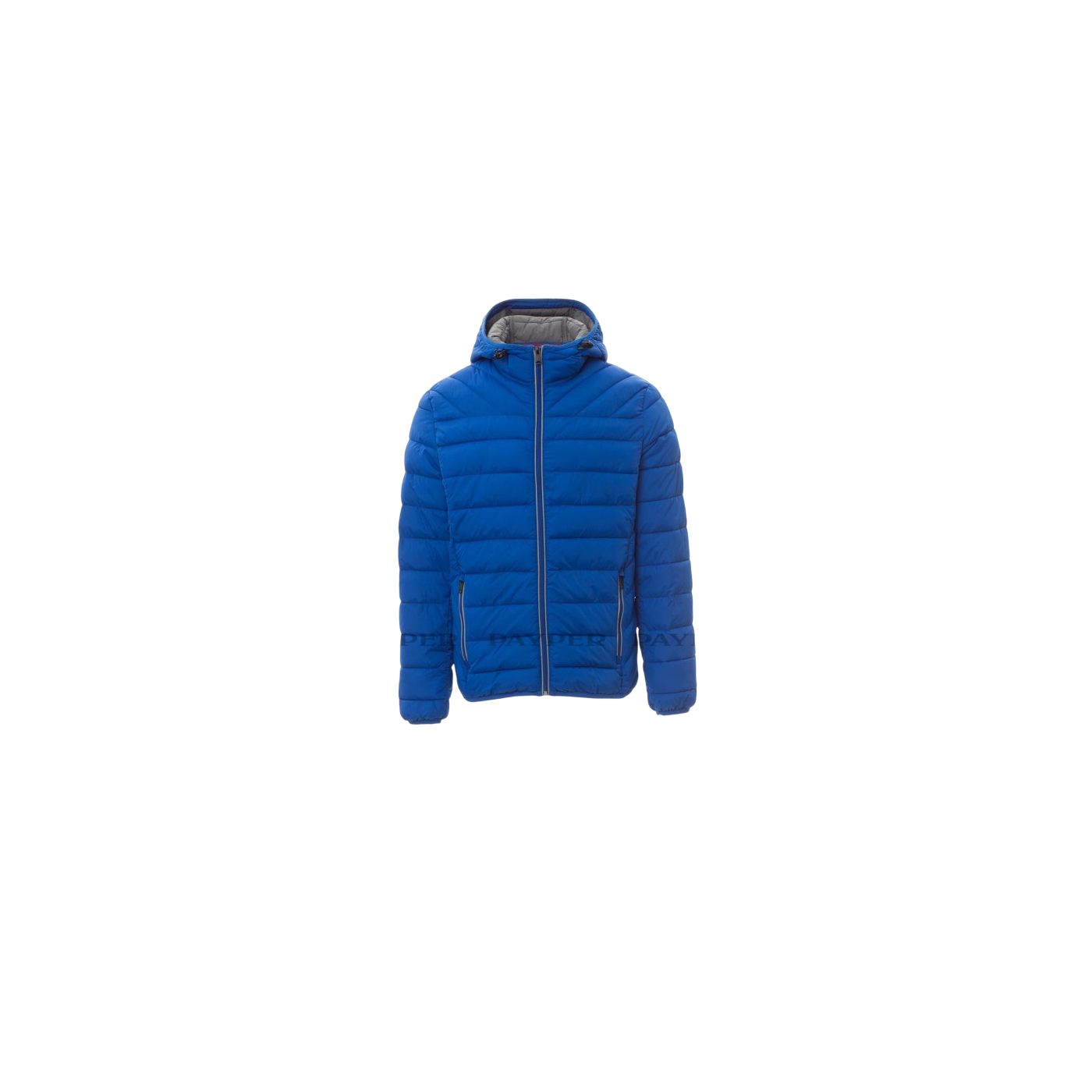 Es una chaqueta para hombre, con cremallera de 5 mm de plástico con un cursor metálico, con borde fino en los puños y la cintura. Contiene dos bolsillos externos. El interior es acolchado de poliéster efecto pluma, y tiene dos bolsillos.