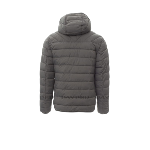 Es una chaqueta para hombre, con cremallera de 5 mm de plástico con un cursor metálico, con borde fino en los puños y la cintura. Contiene dos bolsillos externos. El interior es acolchado de poliéster efecto pluma, y tiene dos bolsillos.