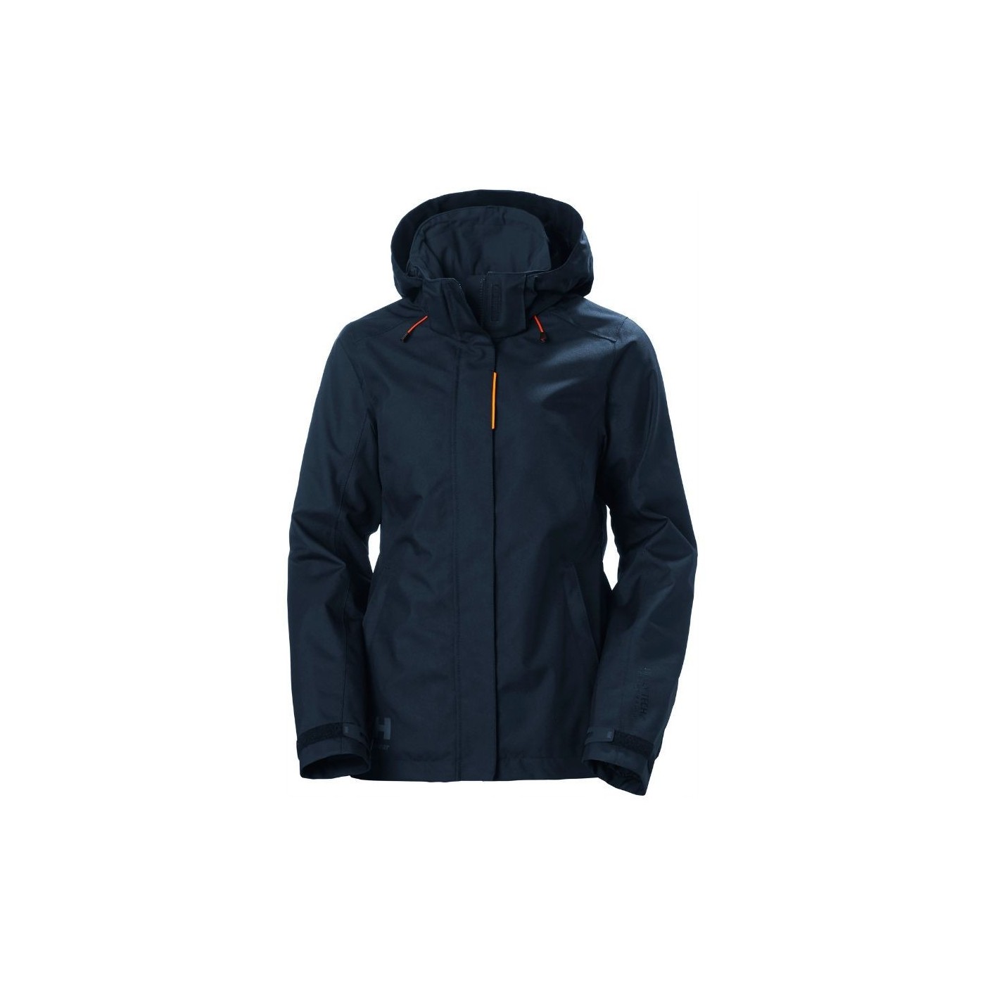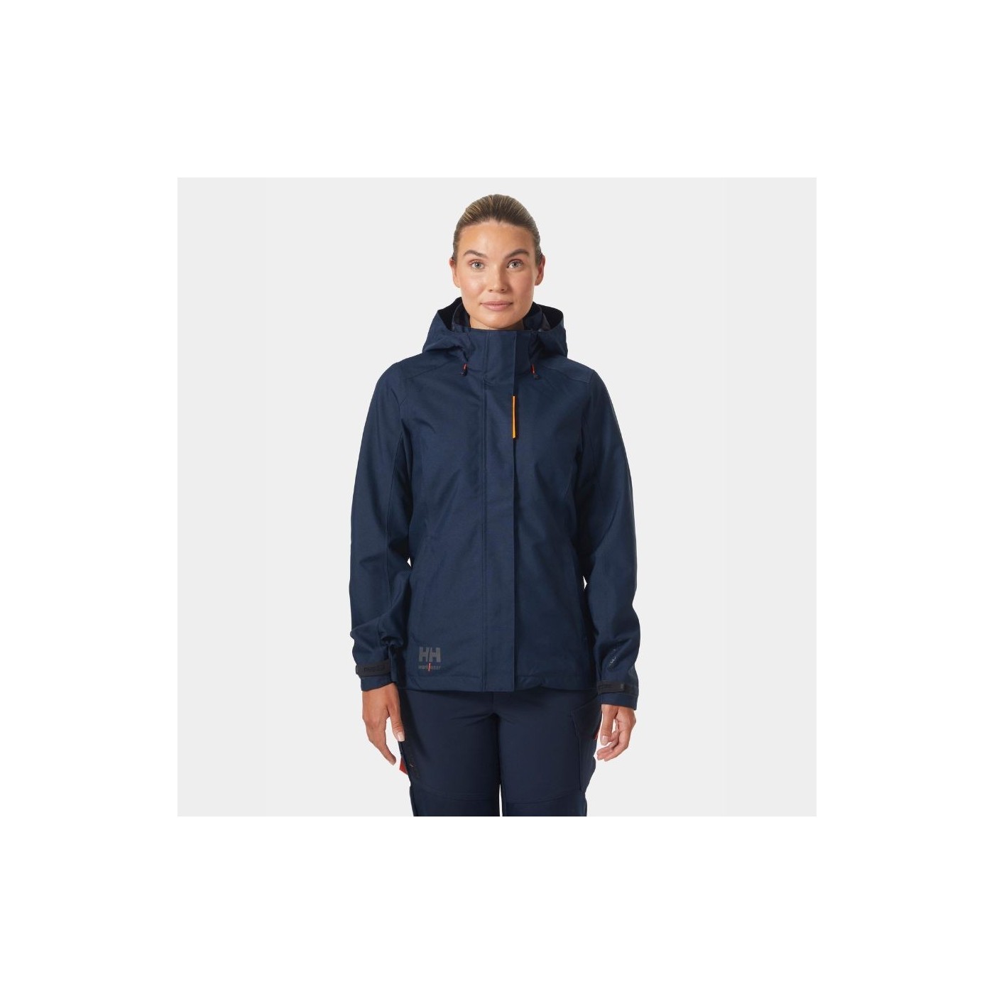 La chaqueta Shell impermeable Kensington Shell, antes Luna, de Helly Hansen Workwear, diseñada para mujeres, combina tecnología HELLY TECH® PROFESSIONAL, costuras totalmente selladas y ventilación avanzada para máxima protección y comodidad en cualquier clima. Ideal para trabajo o actividades al aire libre.