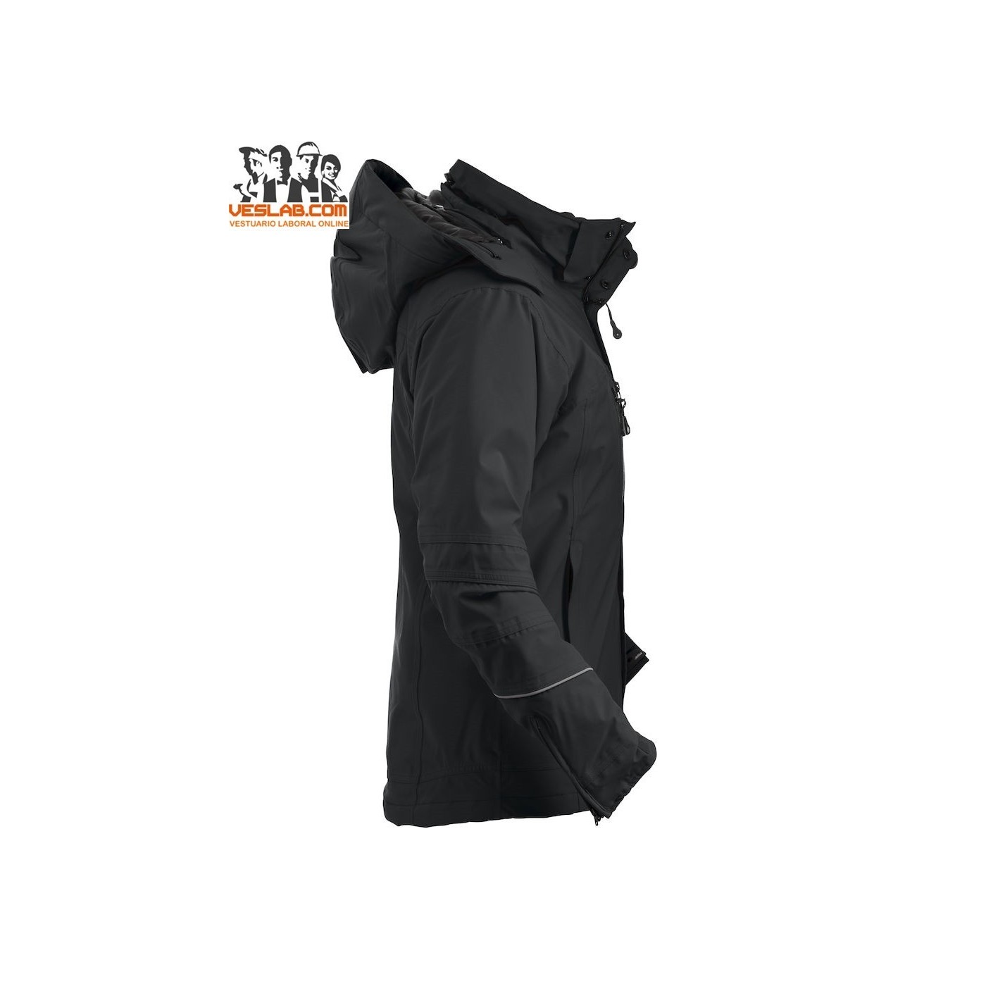 Chaqueta Softshell para hombre con capucha extraíble. Mangas precurvadas, puño interior en mangas. Bolsillo interior cerrado y vivo reflectante en mangas.