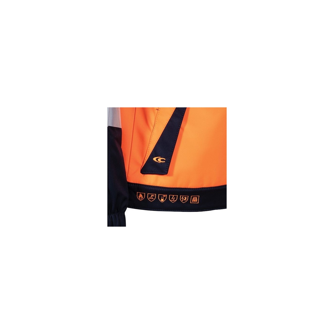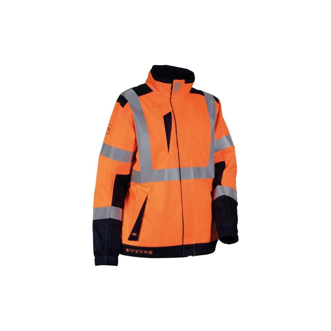 Además, esta chaqueta cuenta con cremallera YKK® de alta calidad y cumple con las normativas de seguridad, visibles en sus pictogramas bordados.