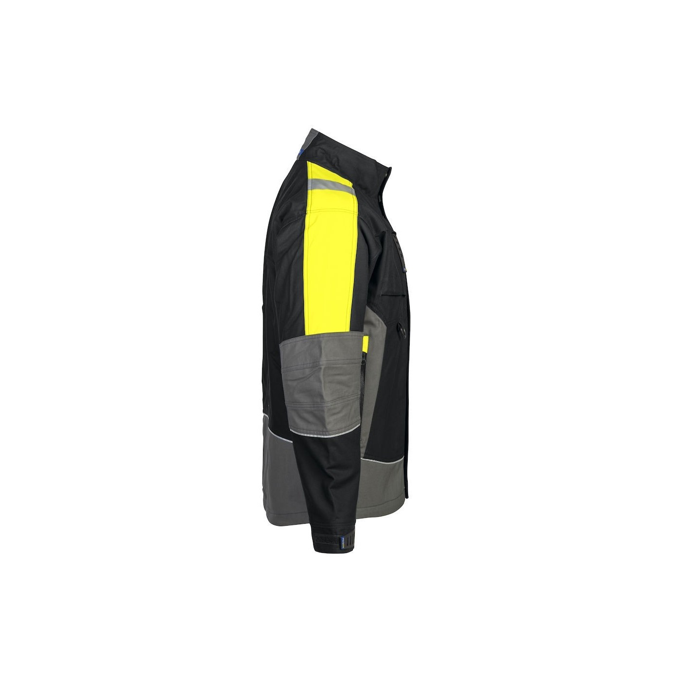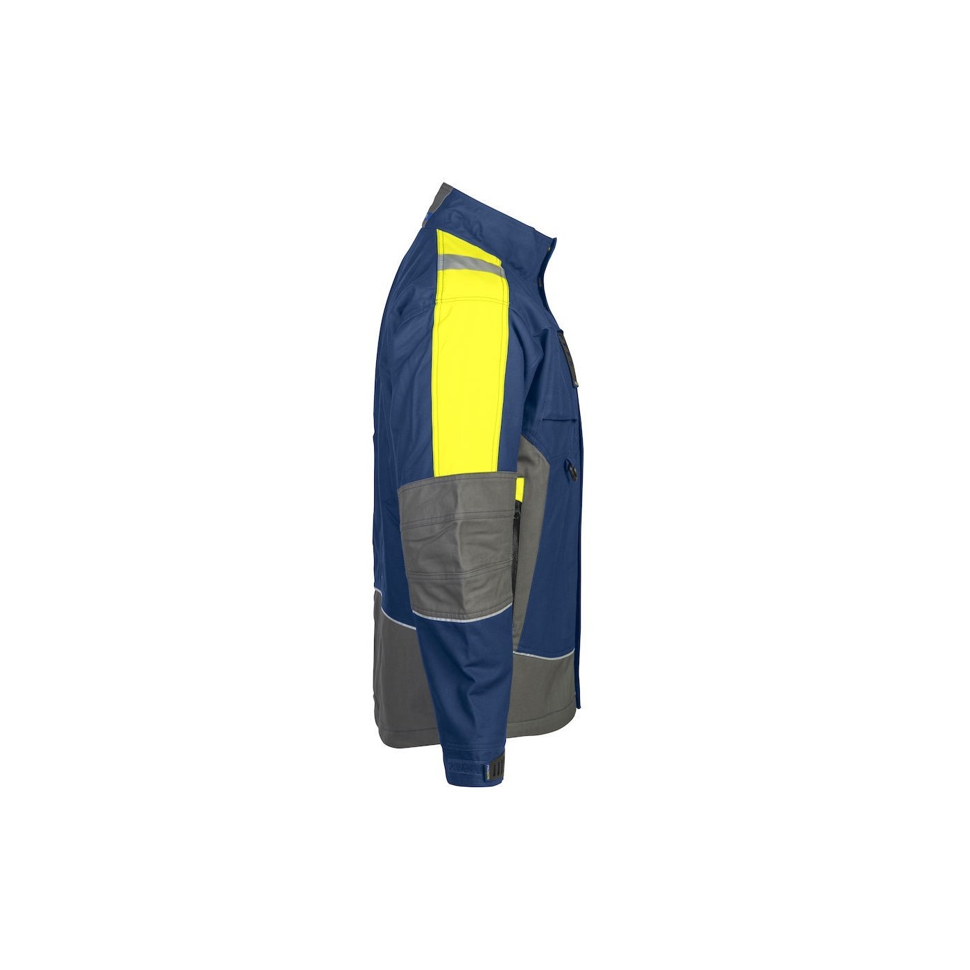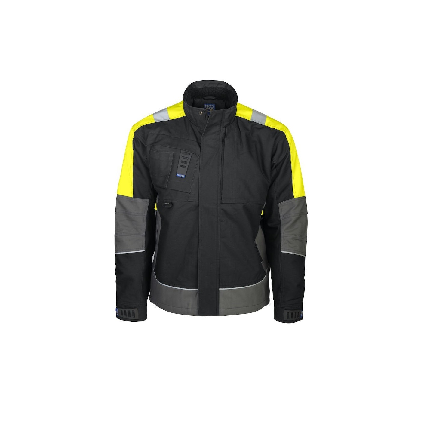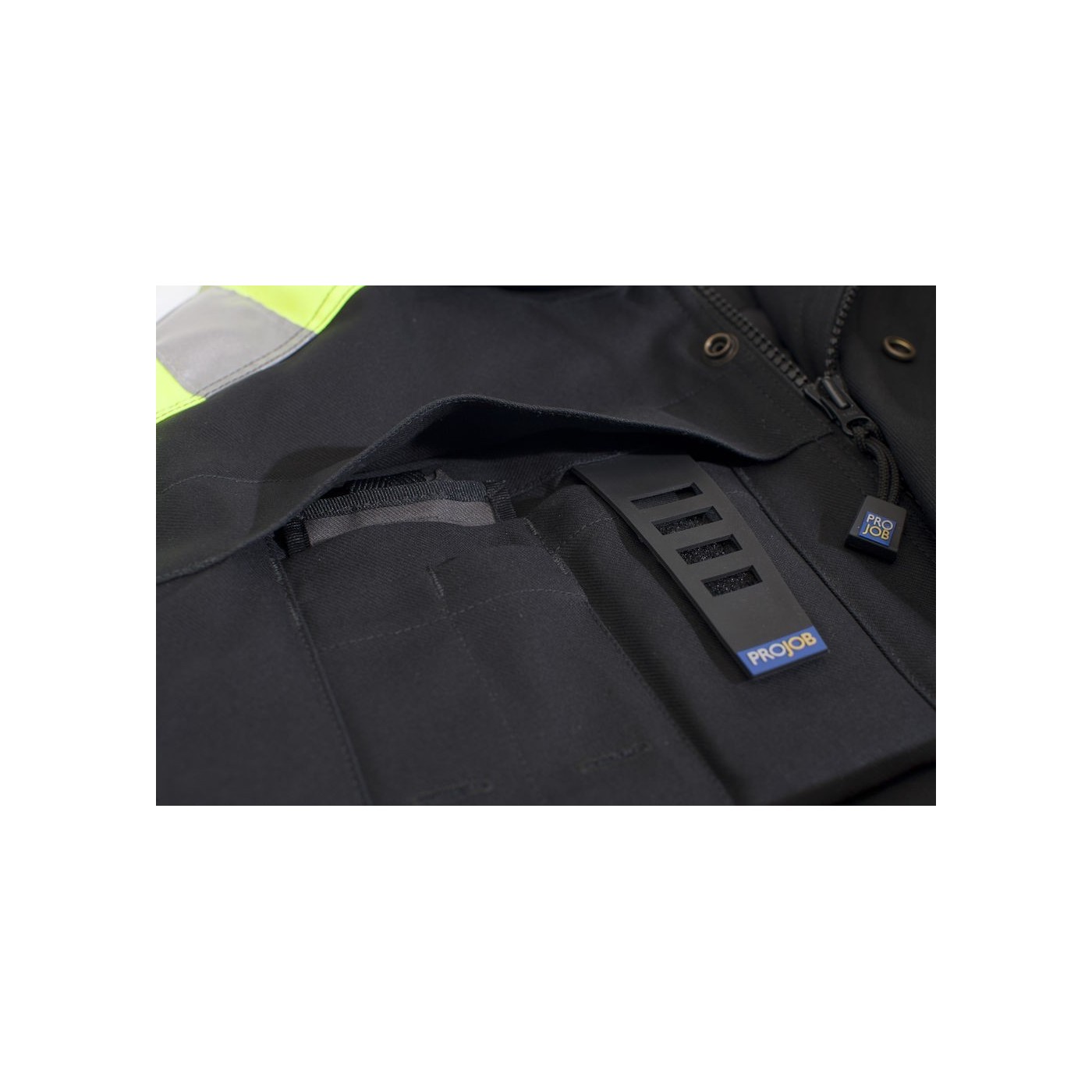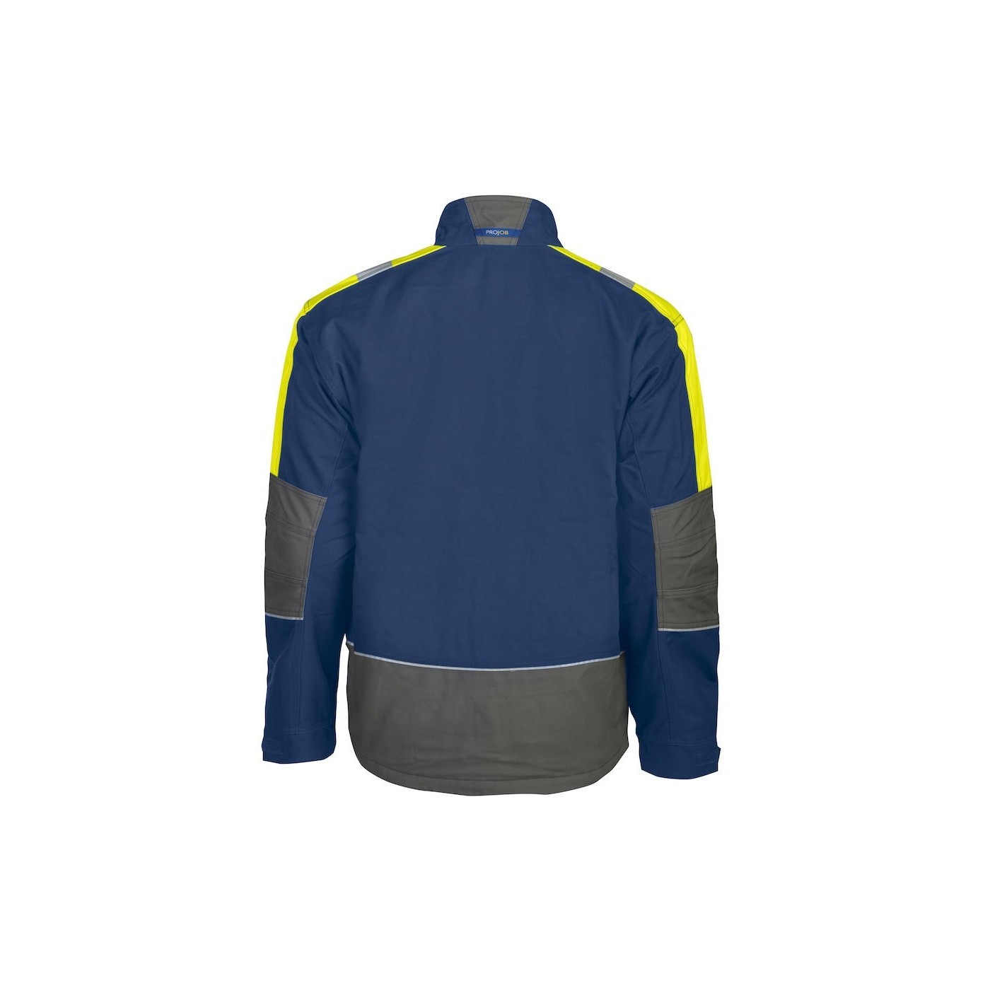 Chaqueta forrada con cuello de felpa. Brazos pre-curvados y puños ajustables. Dos bolsillos laterales con cremallera y cintura con cordón. Abrochado con botones de presión. Dos bolsillos frontales uno de ellos con espacio para llaves y móvil. Trabilla para tarjeta identificativa. Superficie fluorescente en hombres con reflector. El forro se abre fácilmente para facilitar bordado y/o estampado.