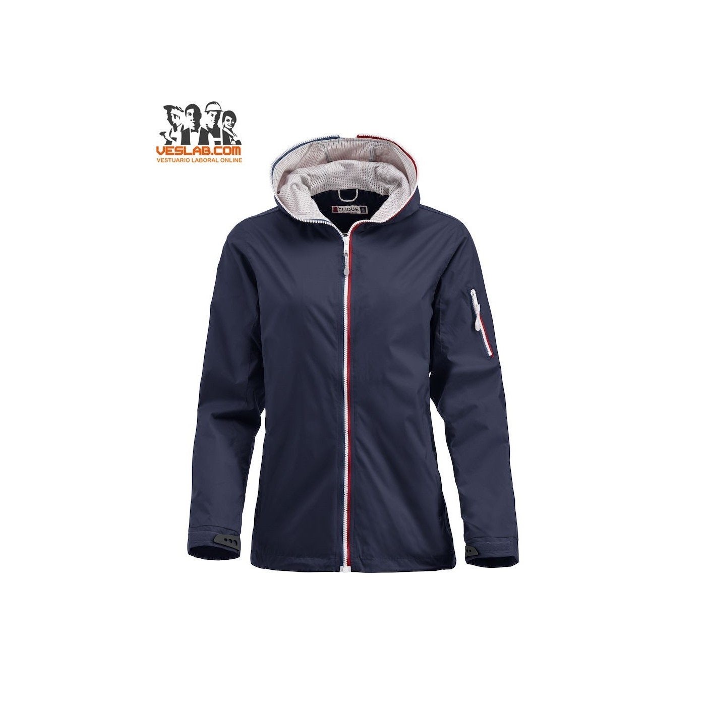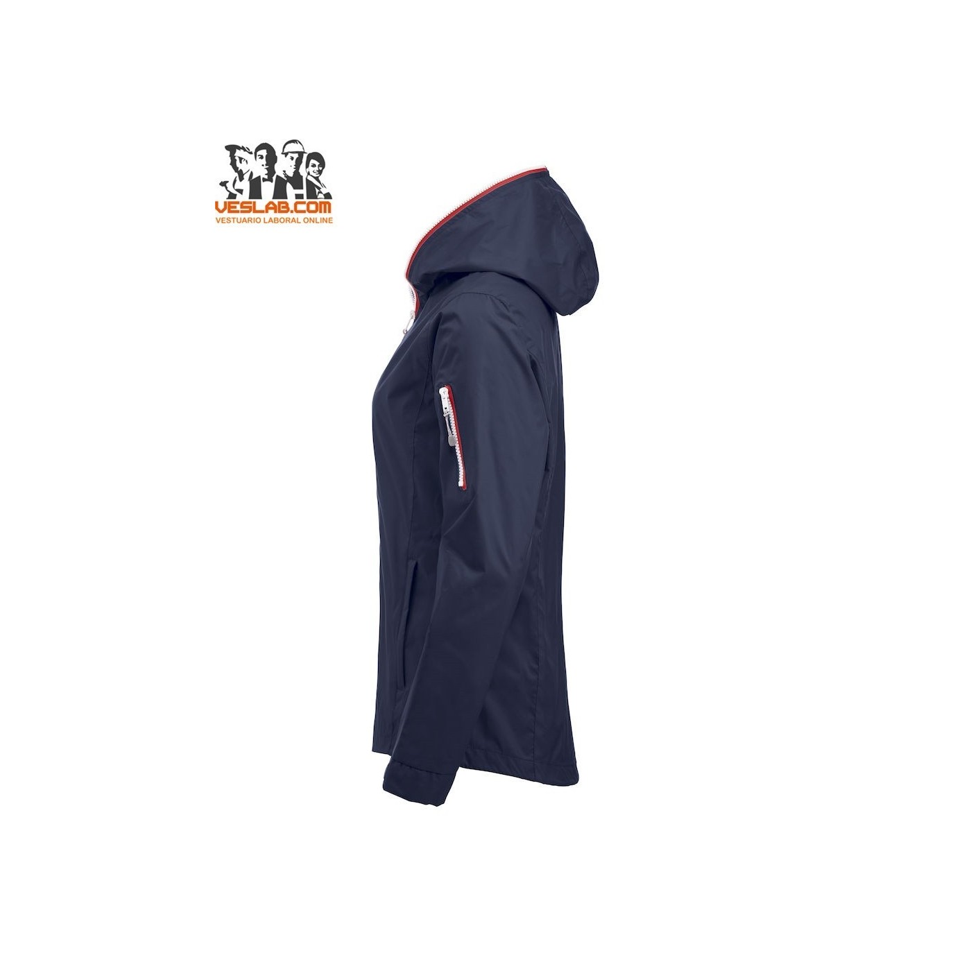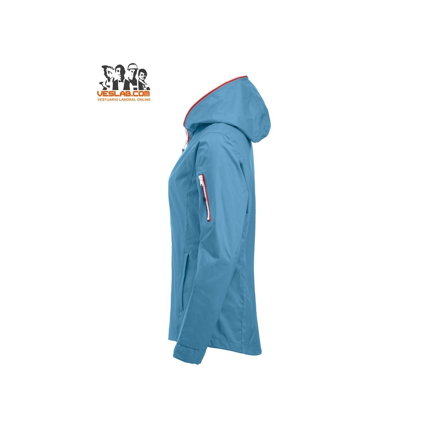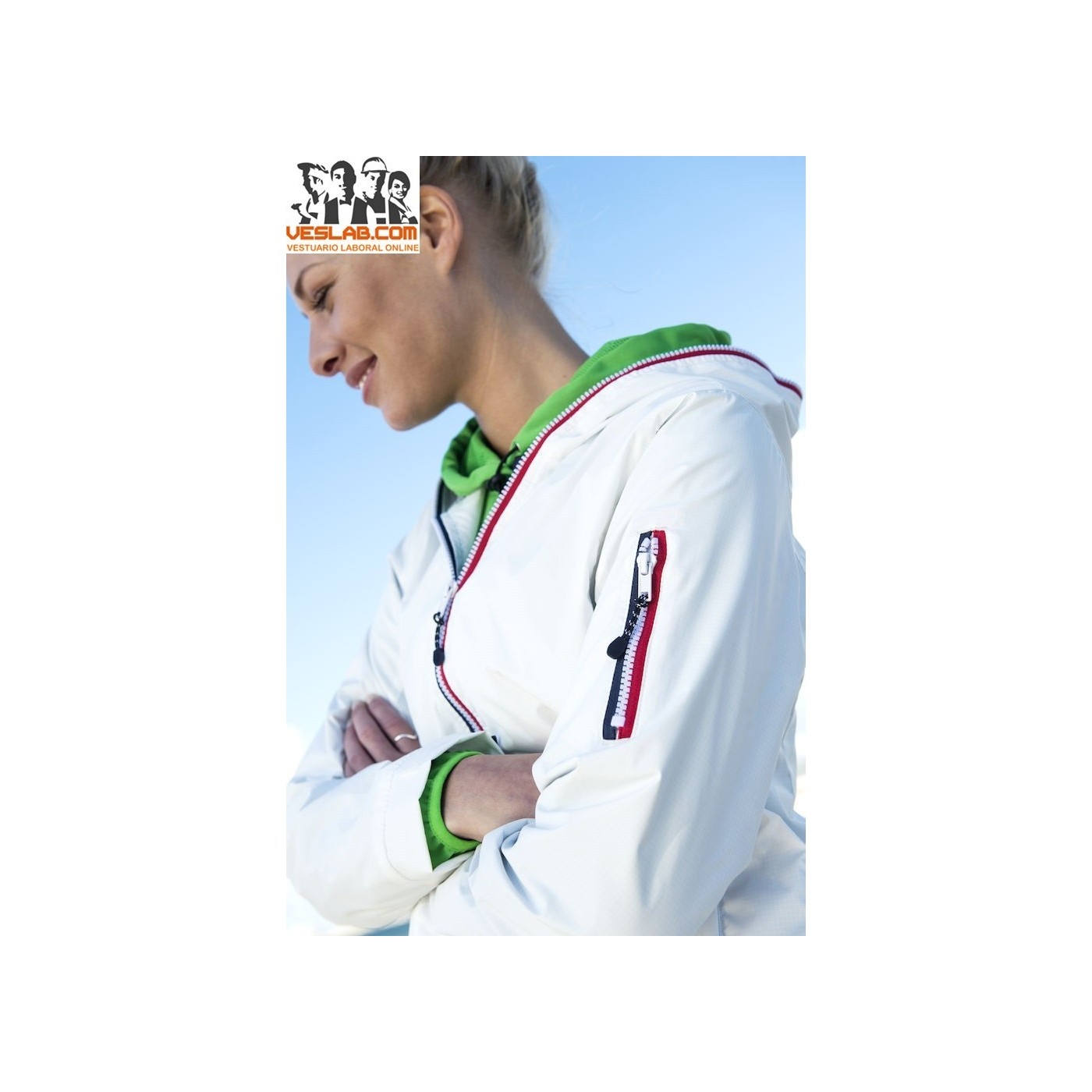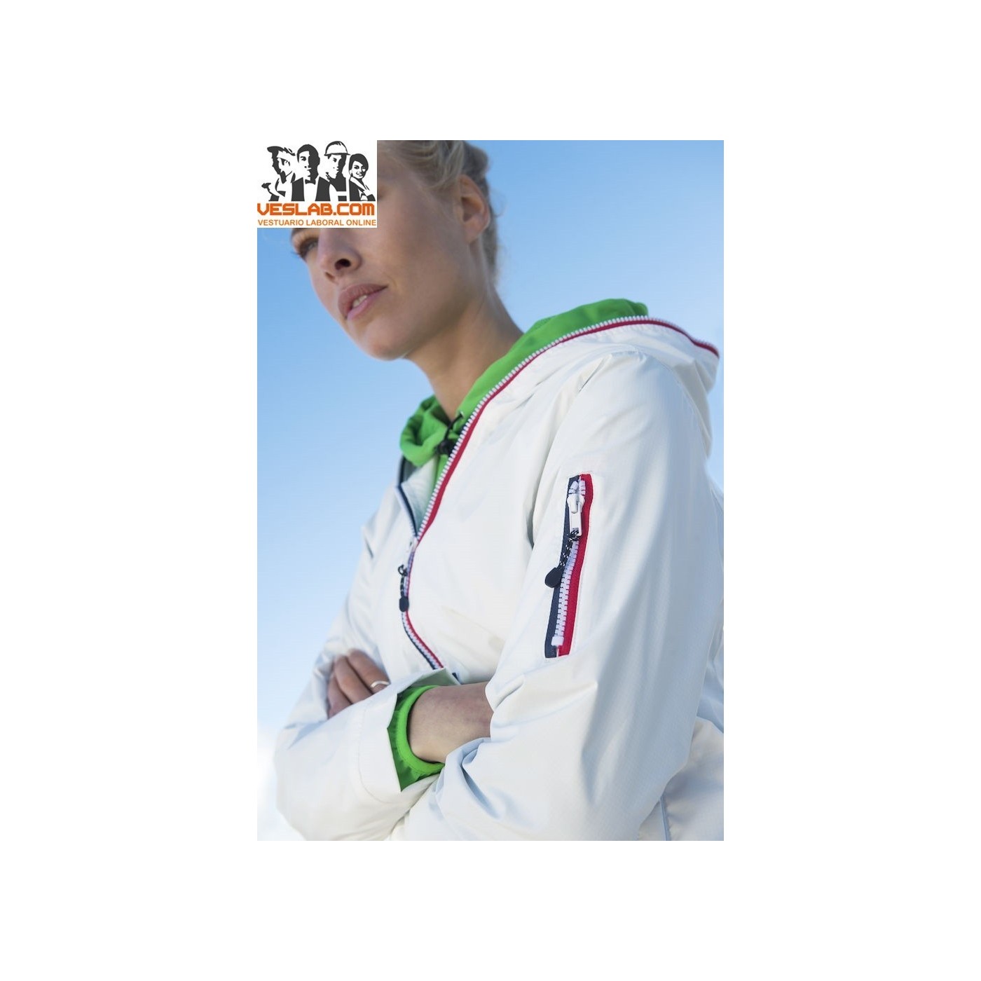 Chaqueta ripstop con forro de malla y cremallera frontal a tres colores y bolsillo en la manga.