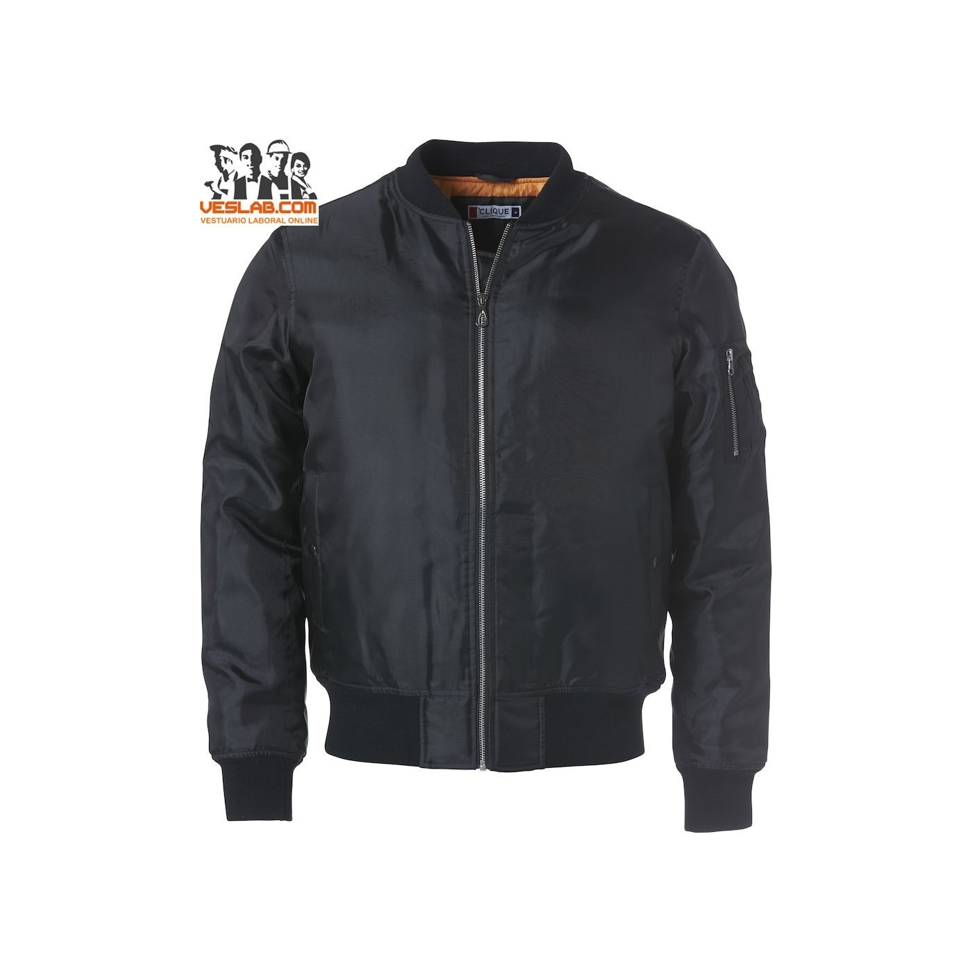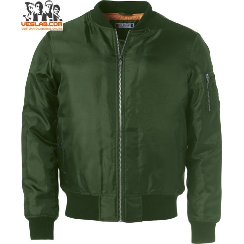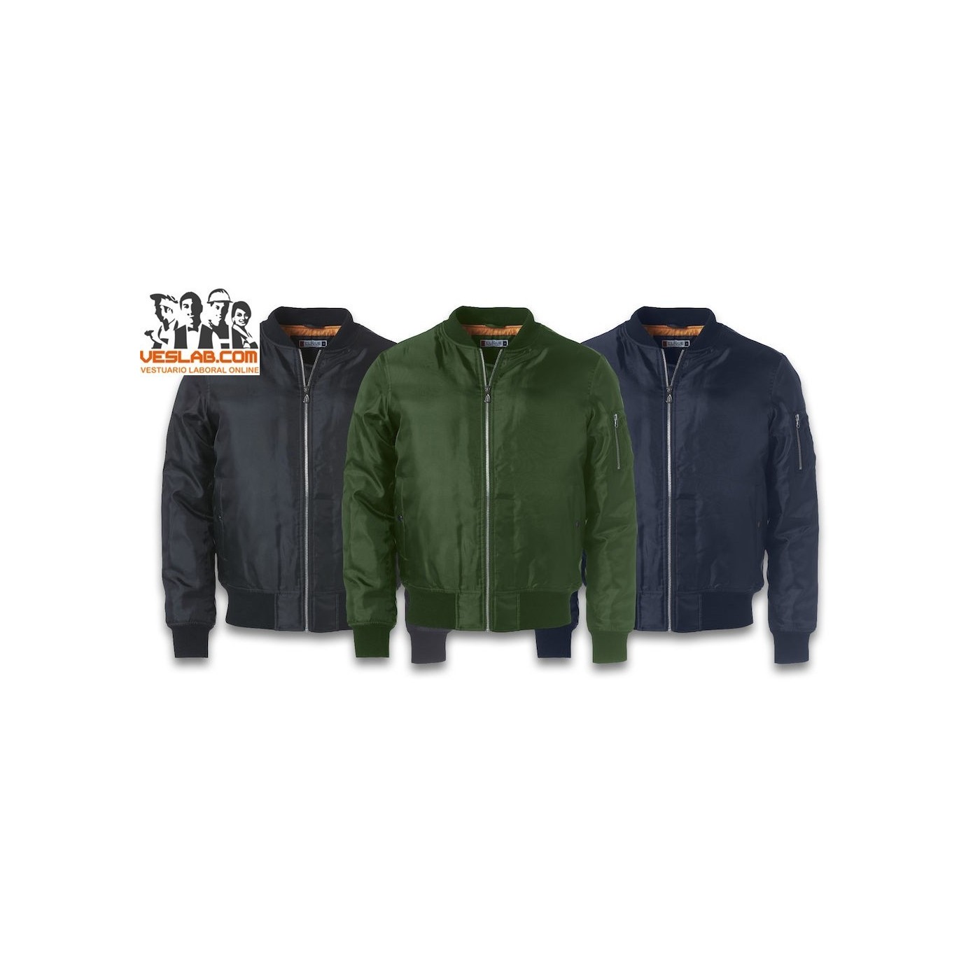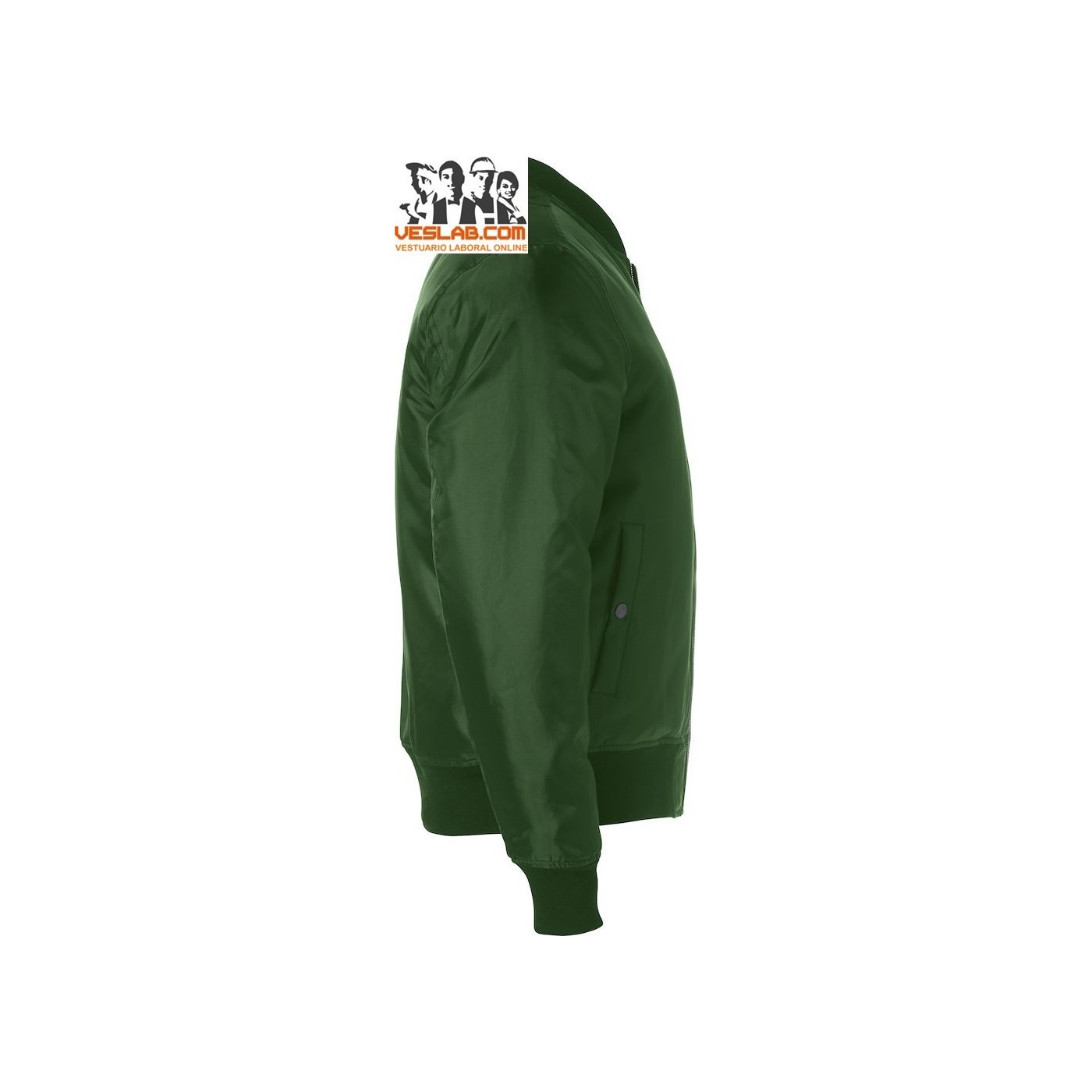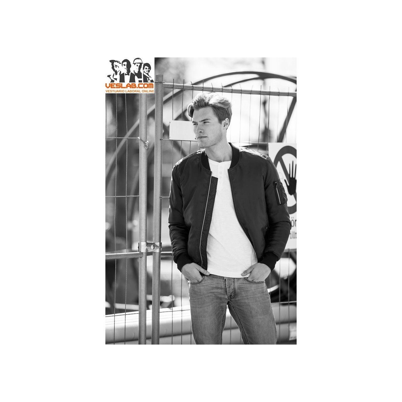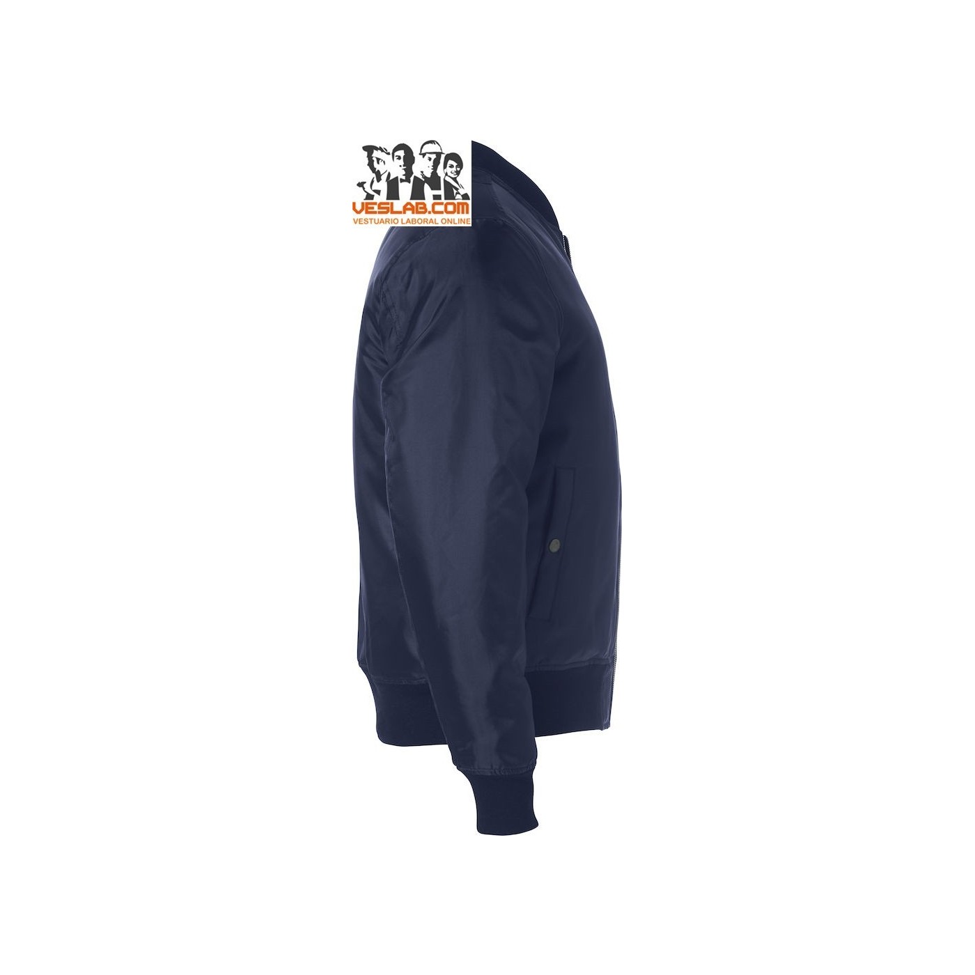 Chaqueta bomber unisex. Bolsillos laterales con botón y bolsillo en manga con cremallera. Bolsillo interior con cremallera. Cremallera SBS.