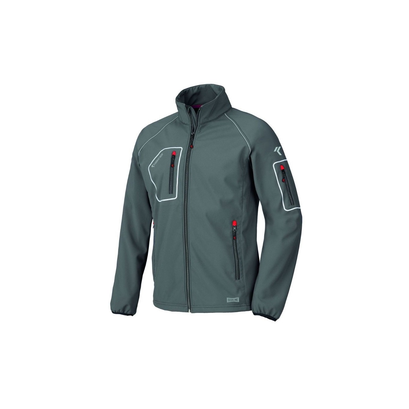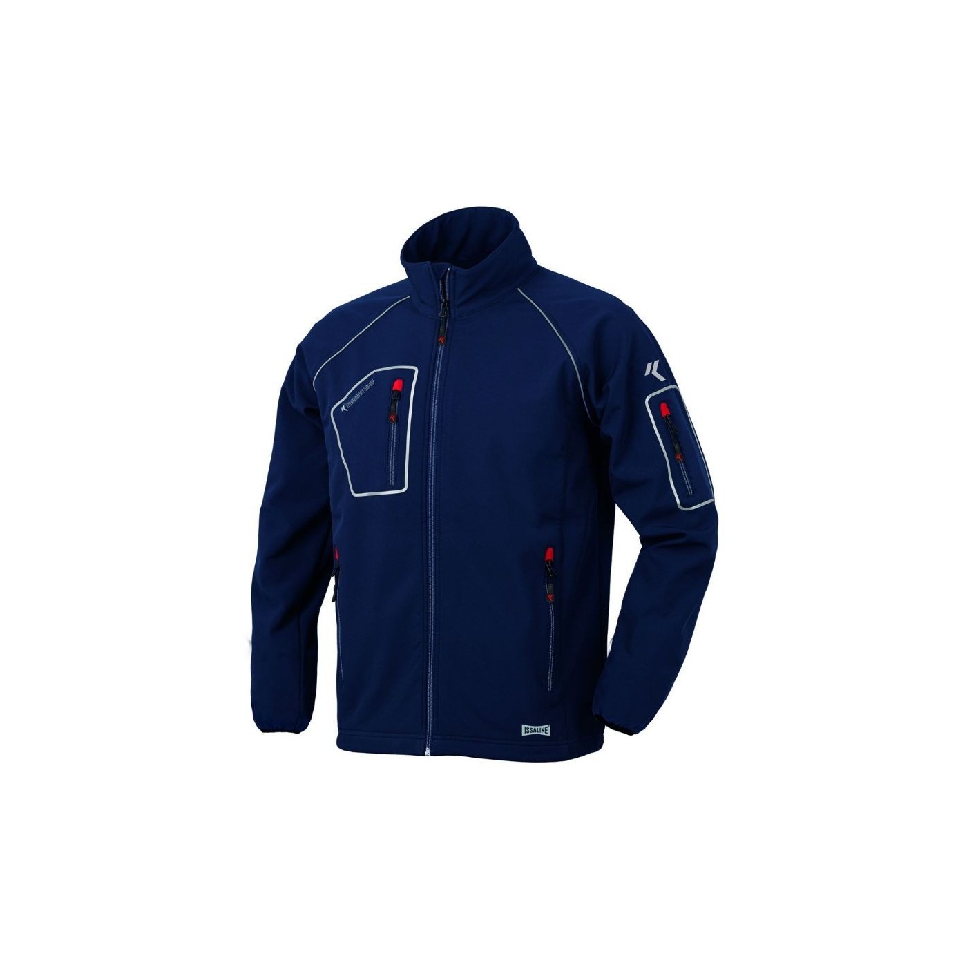 Chaqueta en tejido softshell con 4 bolsillos en tejido particularmente suave y al mismo tiempo técnico. Dotado de inserciones reflectantes y con un práctico roller porta llaves. Composición: Softshell (poliéster/spandex) con membrana, TPU 8.000 mm/1.000 MVP