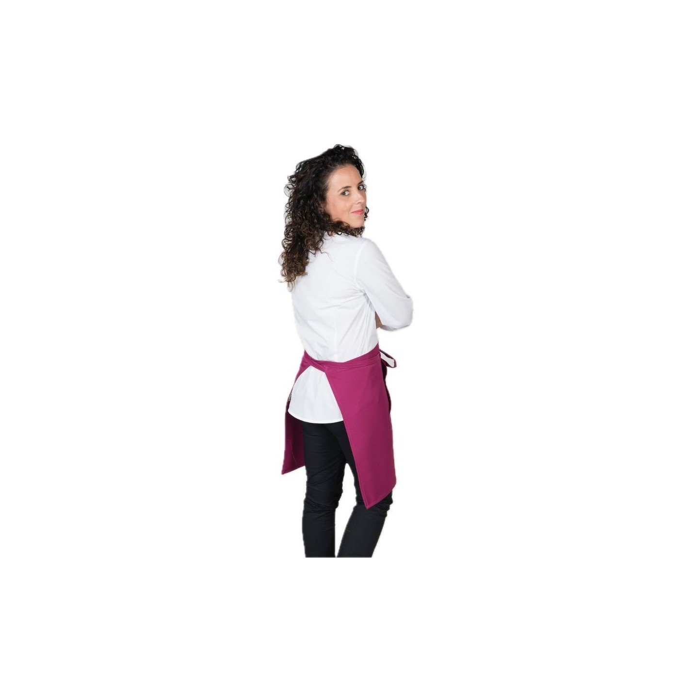 Delantal corto sin peto y bolsillo Gary's, color frambuesa, modelo perfilado