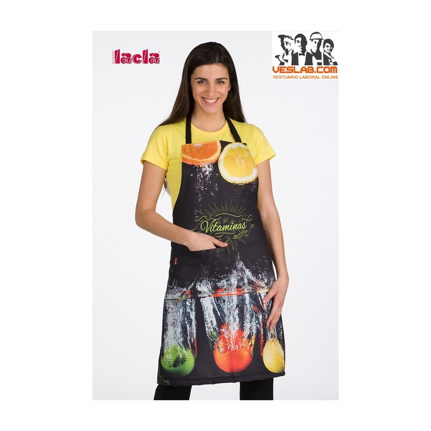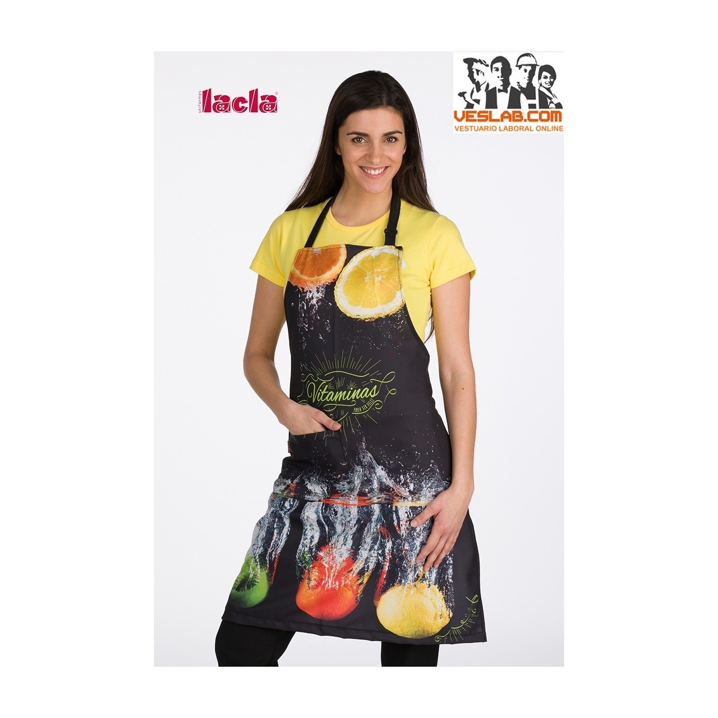 Delantal mediano con peto y bolsillo “ Cítricos estampados“