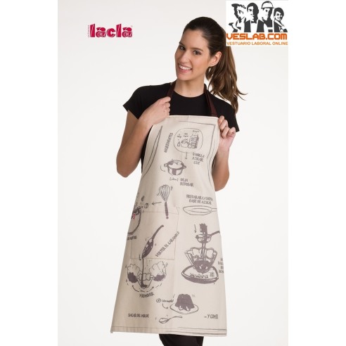 Delantal estampado mediano con peto envolvente y bolsillo . tira cuello graduable con hebilla . Se ajusta con cintas que se anudan por la espalda.