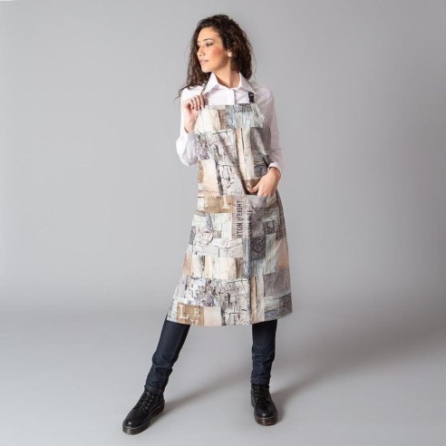 El Delantal Estampado Maderas con Hebilla combina estética y funcionalidad, ofreciendo una imagen moderna y profesional para el sector de la hostelería.