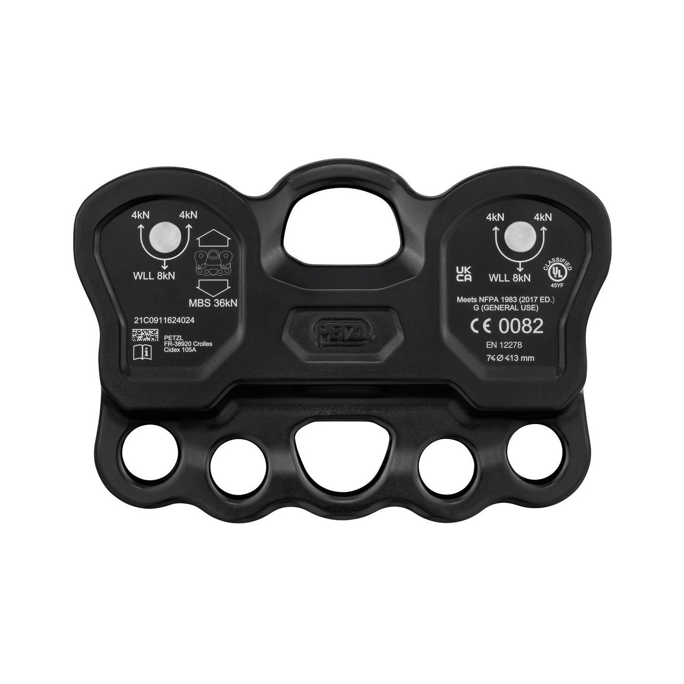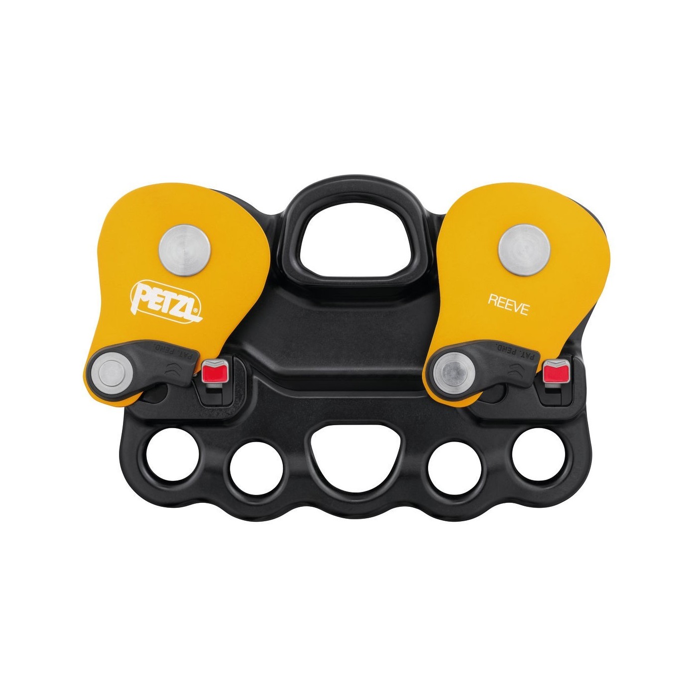 Combinación de dos poleas y de una placa multianclajes, la polea de desplazamiento REEVE es una solución integrada, diseñada para simplificar la instalación de los sistemas de rescate con tirolina. Su formato compacto limita el número de conectores utilizados y la altura del sistema. Las dos roldanas de gran diámetro con rodamiento de bolas estanco proporcionan un rendimiento excelente durante los desplazamientos. Los múltiples orificios de conexión, compatibles con el paso directo de cuerdas, de cintas y de mosquetones, permiten una mejor organización.