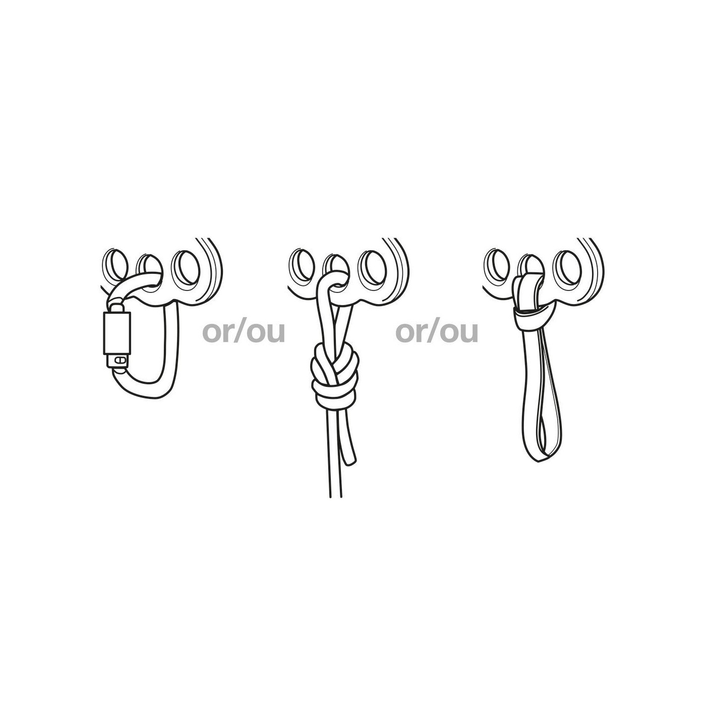 - Orificios de 19 mm que permiten el volteo de la mayoría de los mosquetones.