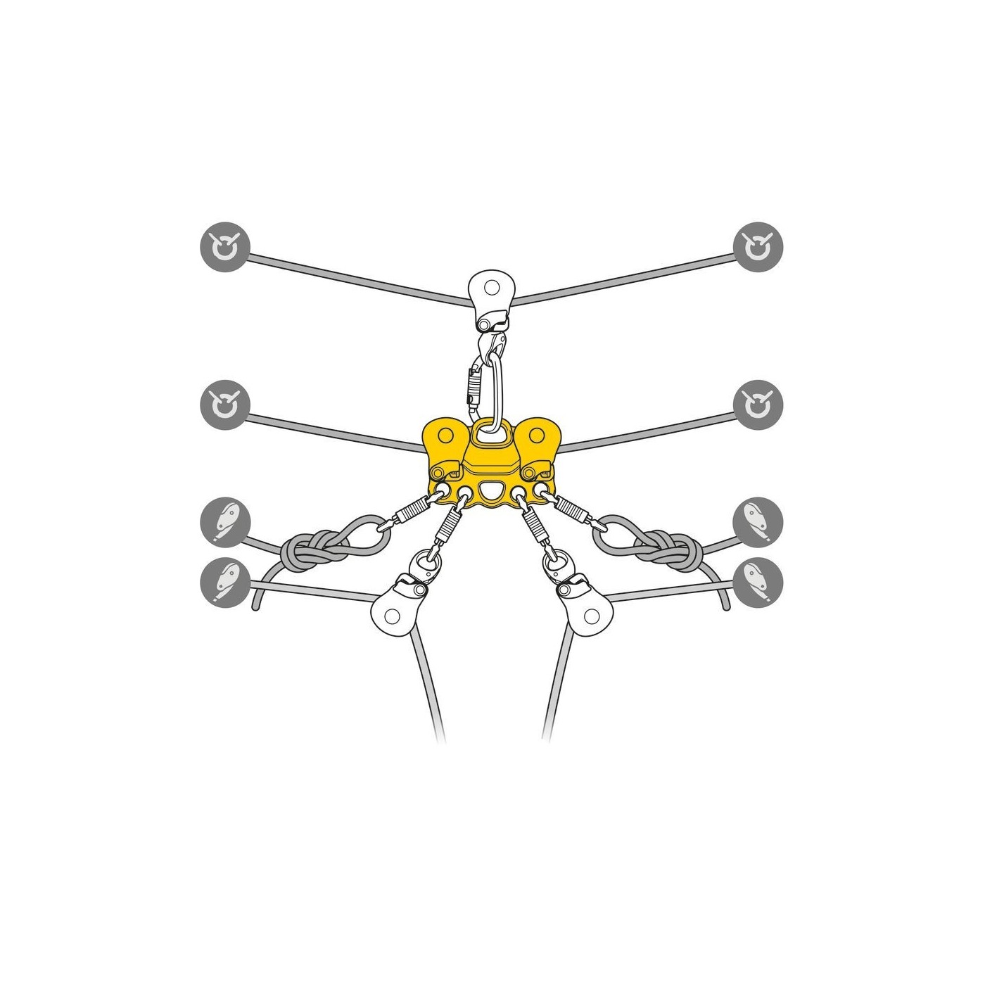 - Posibilidad de duplicar el sistema yuxtaponiendo dos poleas REEVE, si la proximidad de las cuerdas lo permite o conectar una polea en el orificio superior si las cuerdas están separadas.