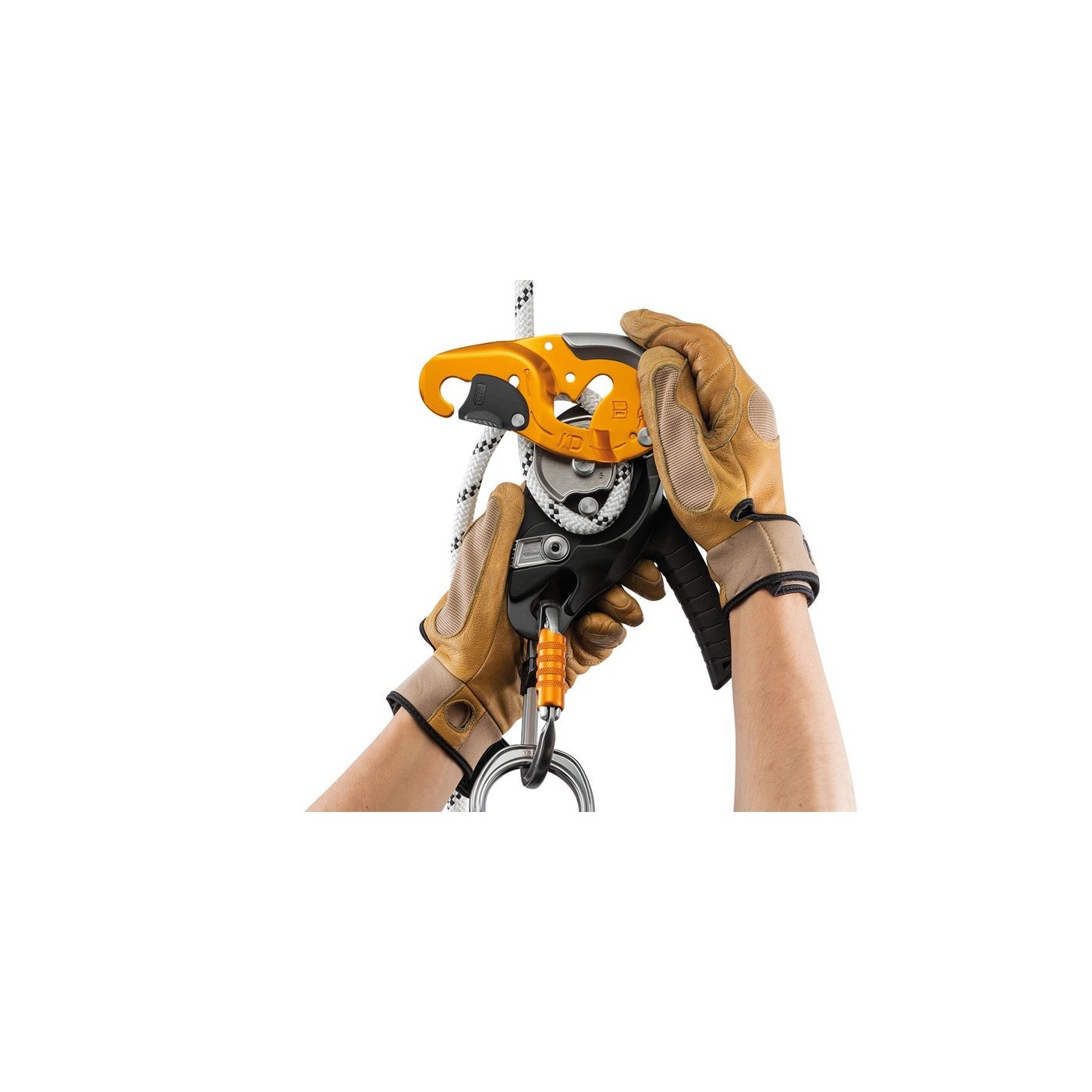 - Una vez bloqueada, la cuerda puede ser recuperada sin tener que manipular la empuñadura, lo que permite convertir un sistema de izado en reversible o realizar fácilmente cortos ascensos por cuerda.