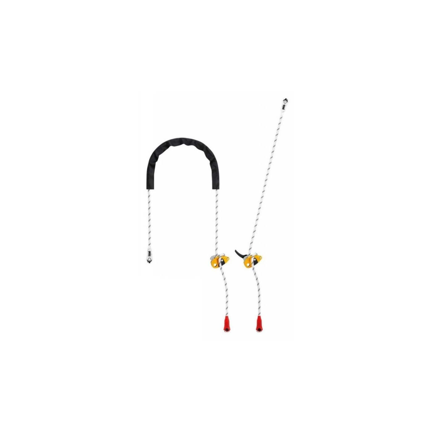 - Funda de protección que permite proteger la cuerda de los puntos de contacto agresivos, favoreciendo al mismo tiempo su deslizamiento. Esta protección es amovible, lo que permite ascender lo más cerca posible del anclaje cuando el elemento de amarre se utiliza en simple.