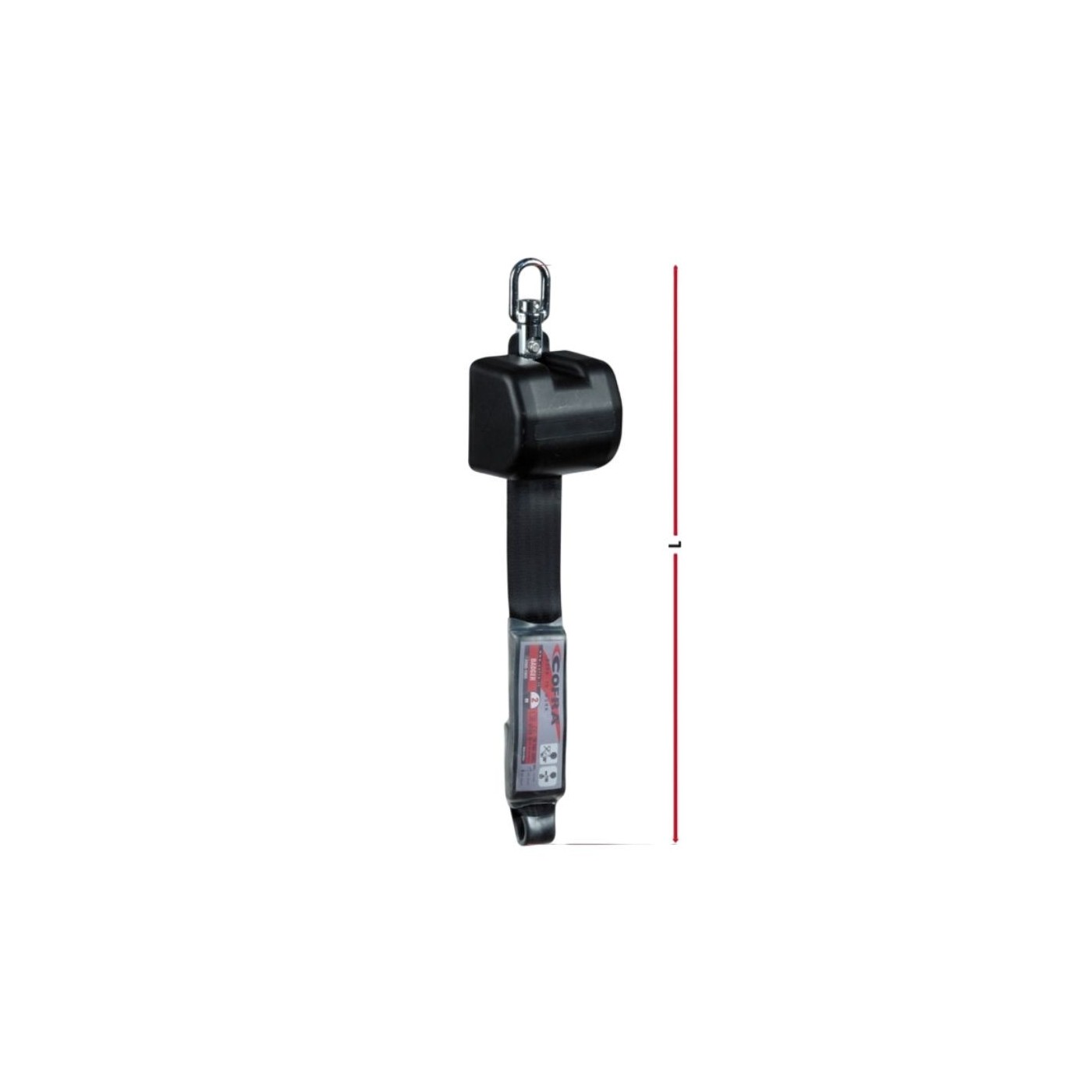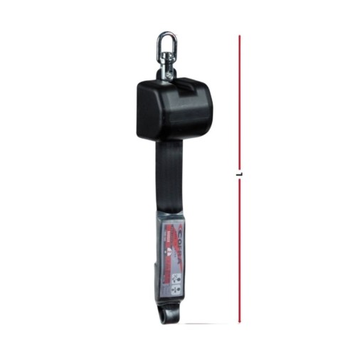 Dispositivo de tipo retráctil equipado con un absorbedor de energía. Correa de poliéster. Sistema anti-torsión del cable SWIVEL.